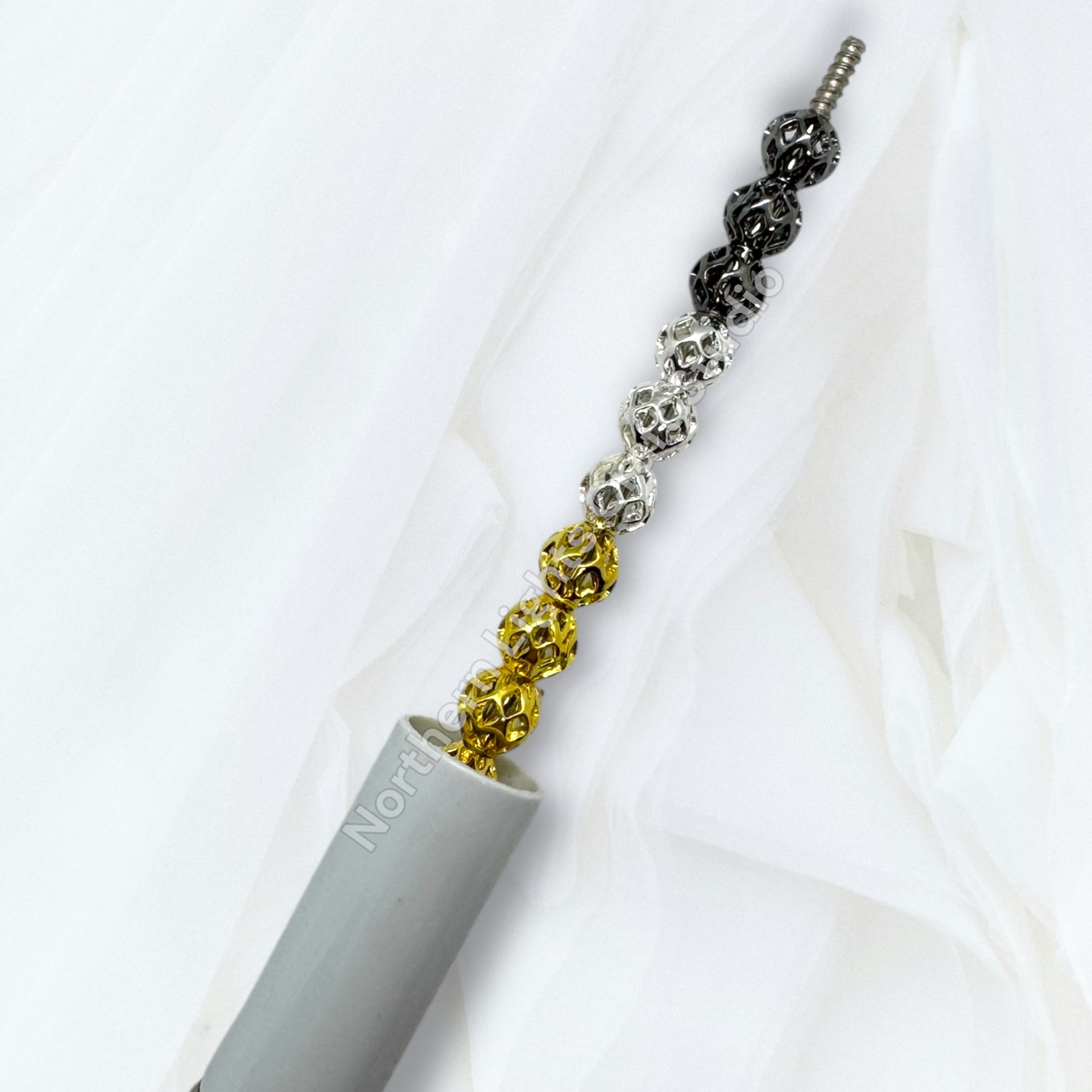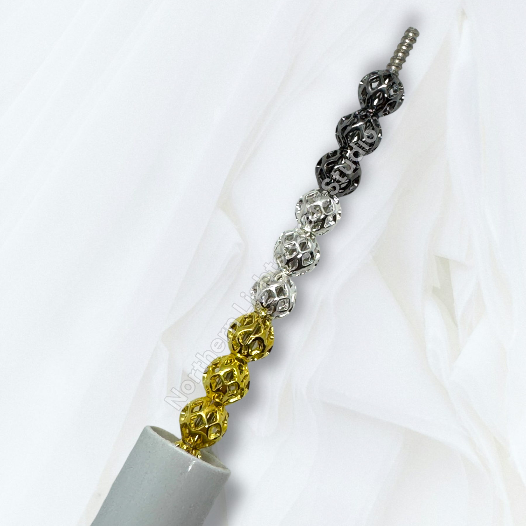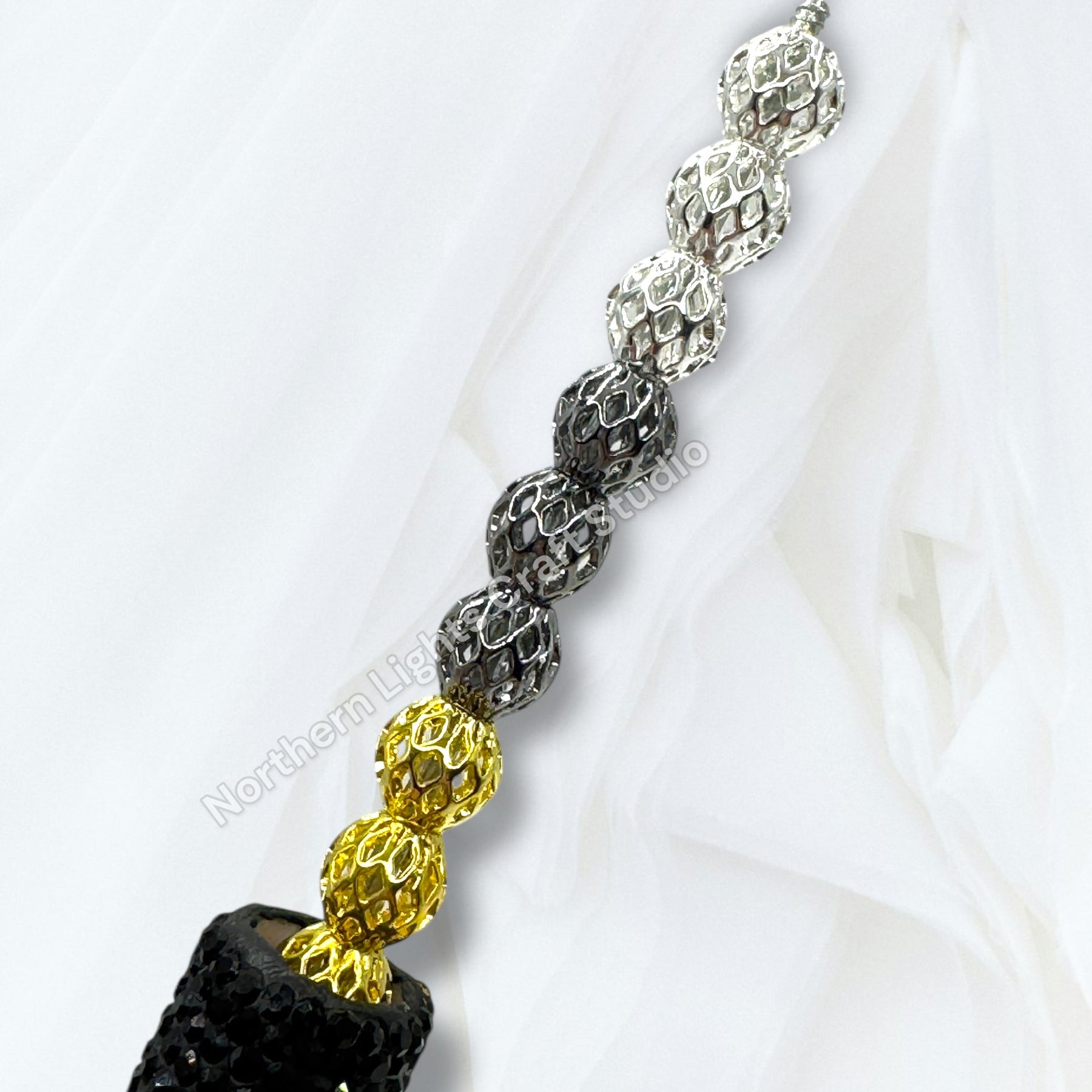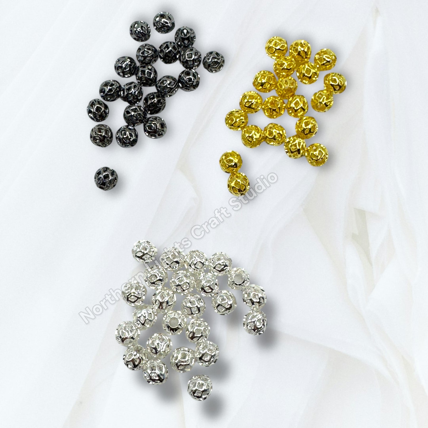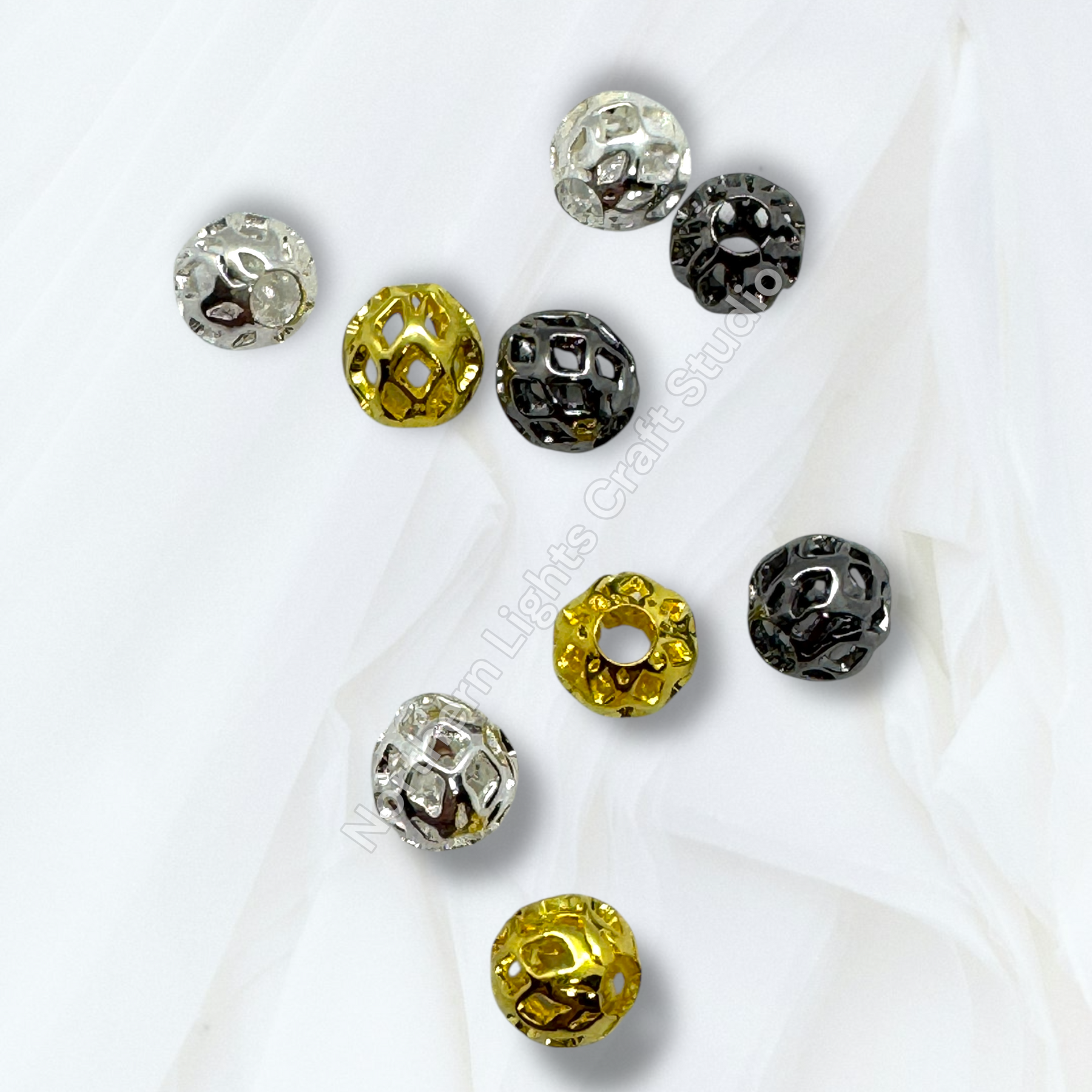Price is for 25 6mm metal alloy lattice design metal round 8mm beads. barrel spacers. Holes are large enough to fit on beadable pens.