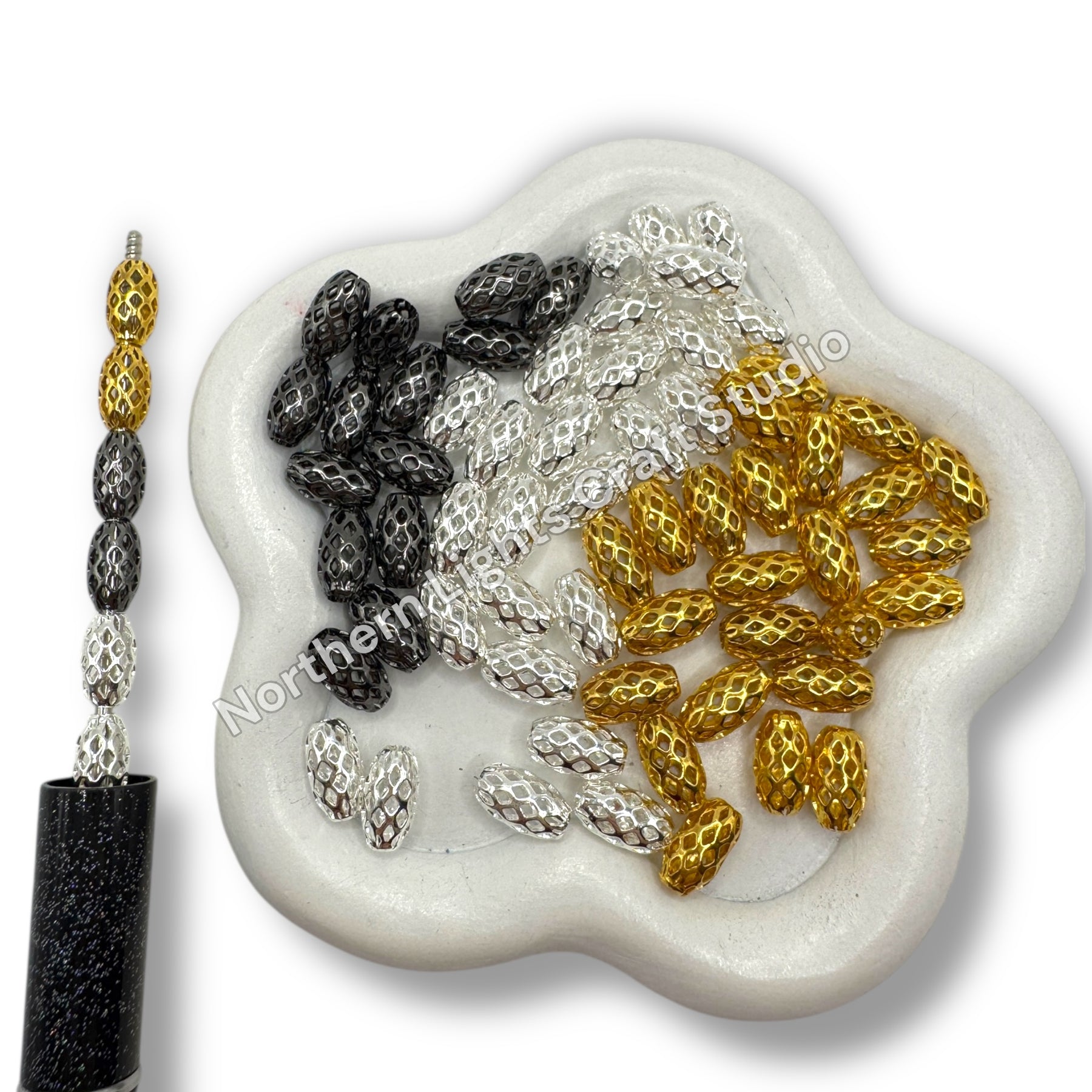 Price is for 20 barrel spacers. Bead spacers are approximately 9.8mm x 5.5mm and are perfect for jewelry making. Holes are large enough to fit on beadable pens and are perfect for using when trying to fill gaps.
