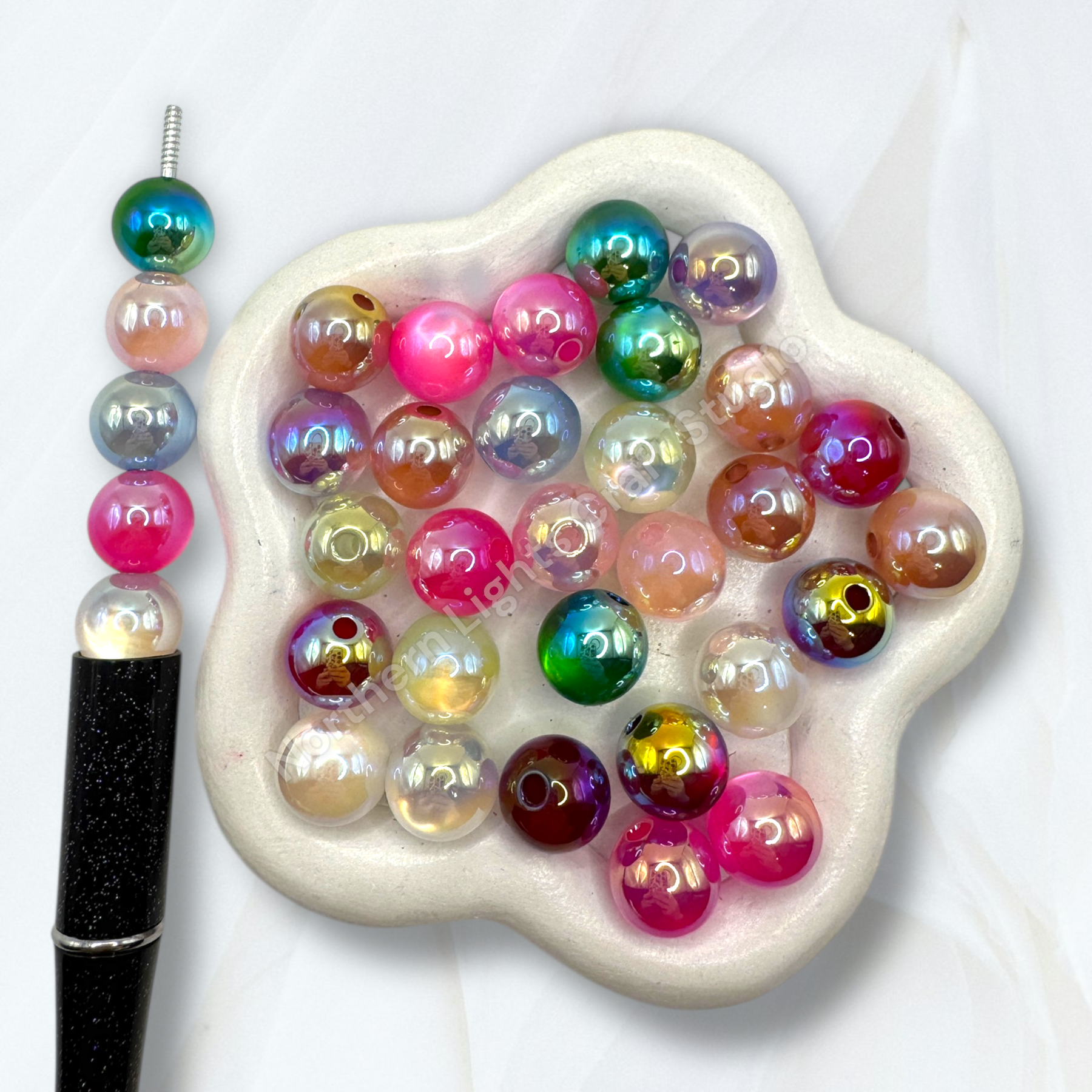 Price is for one randomly picked mixed 25pc. color pack of 12mm UV cat eye shiny beads. Holes are large enough to fit beadable pens and keychains.