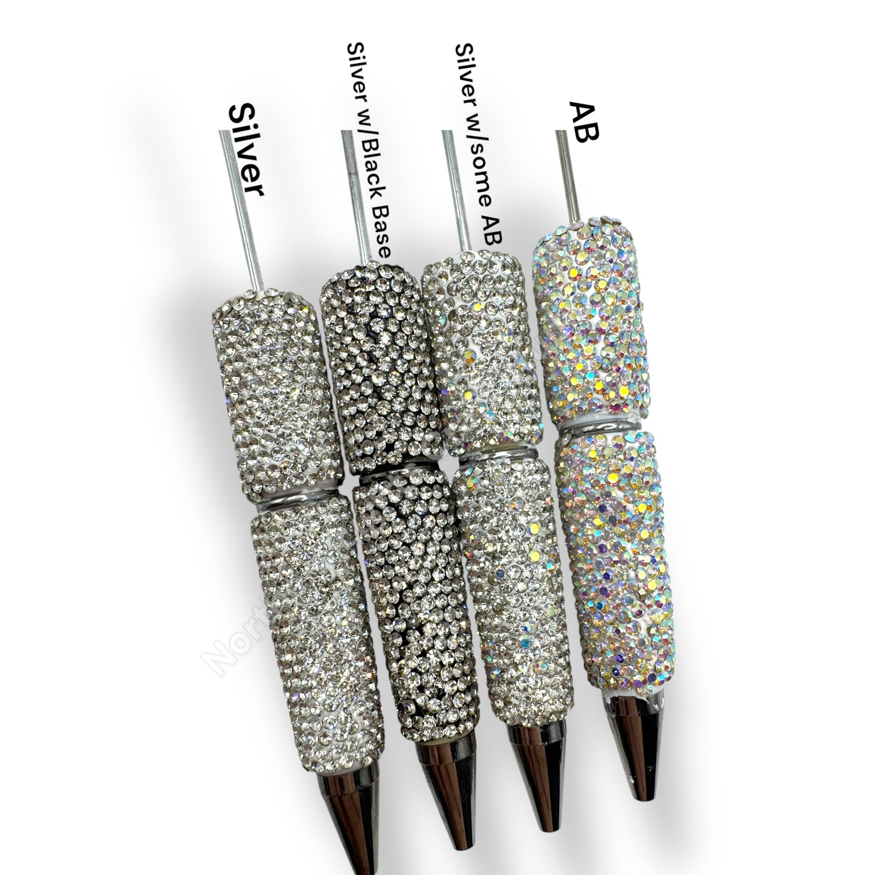 Price is for one pen.  These handmade full rhinestone pens are perfect to bring some sparkle to your crafting day!  Pens are created with a clay base on top of the plastic barrel and then rhinestones are placed into the clay. Pens are medium ball point that write 1.0 black ink. Each pen measures approximately 15x146mm (.59in x and 5.74in) and weighs approximately .29 oz.  Pens are refillable with Beadable Pen refills which are available on our site in either blue or black colors.  Note that over the counter refills will not work with these.