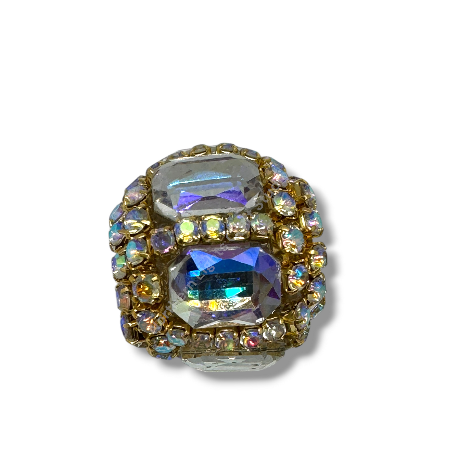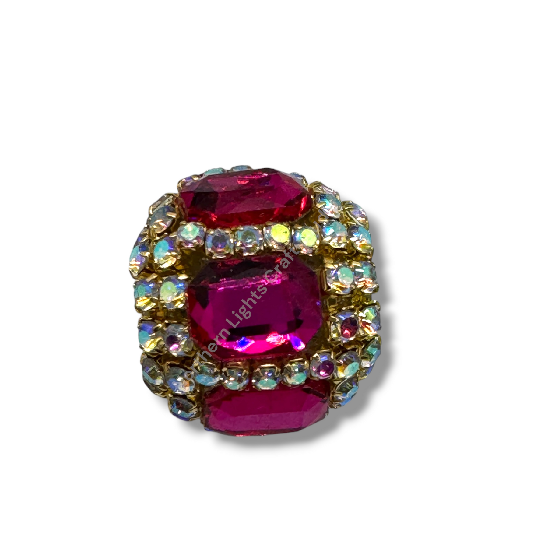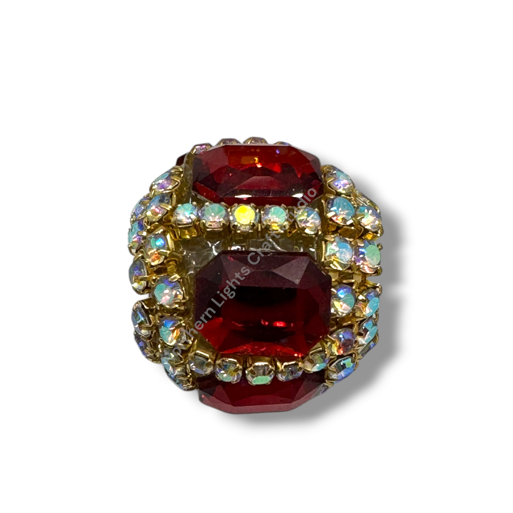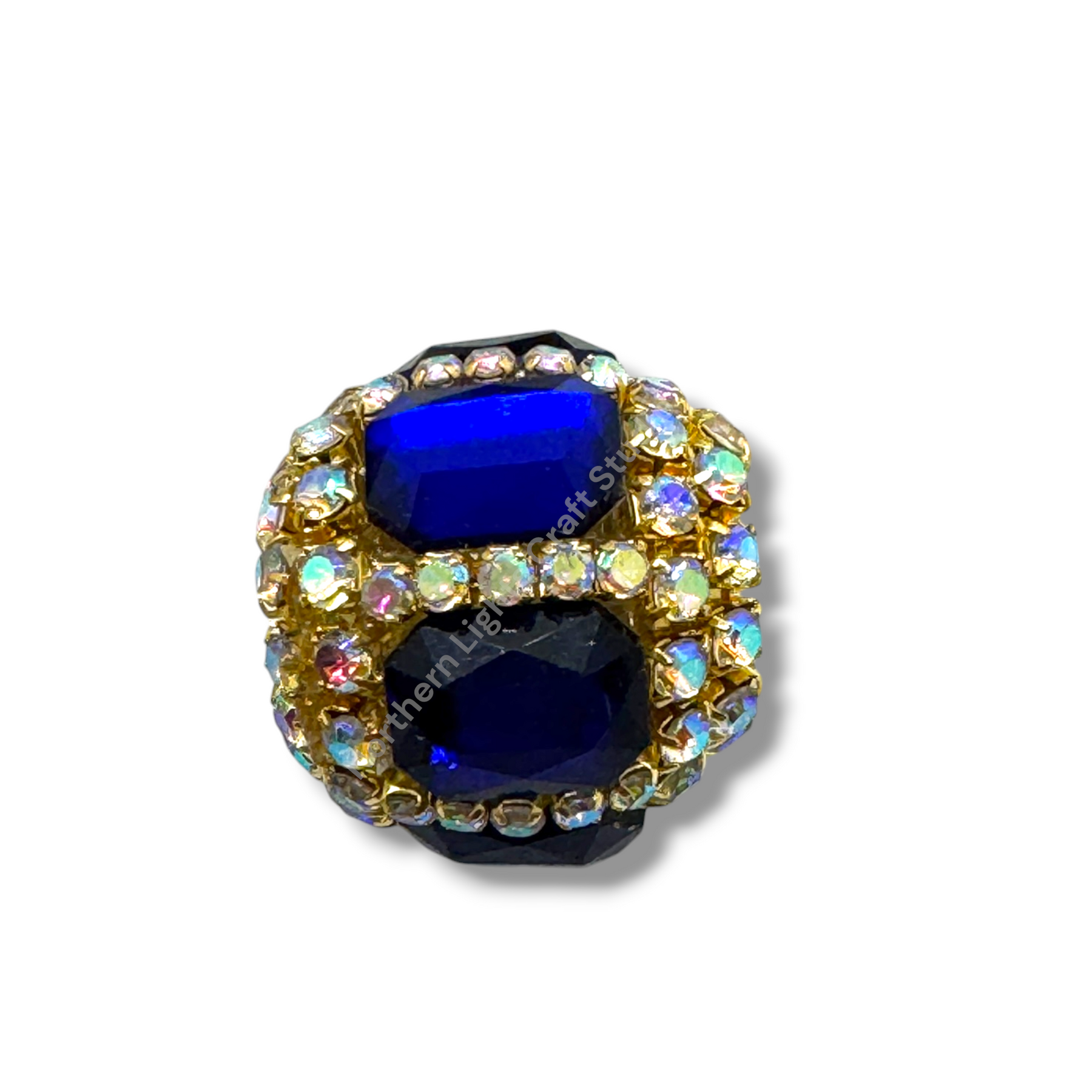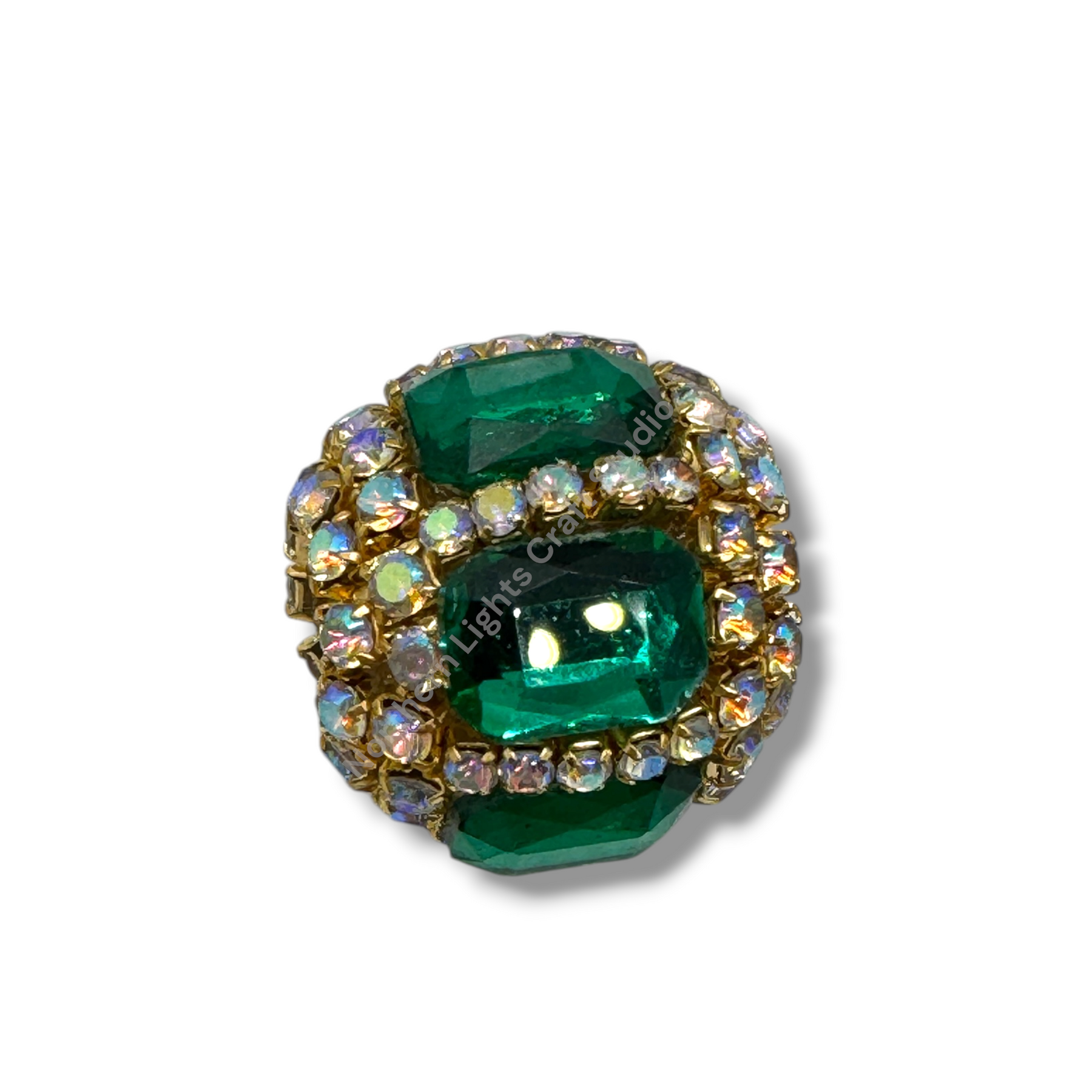 Price is for either three pieces of the same color - you choose, or a 10pc. randomly mixed bag.  Beads feature a rhinestone chain with gold finish and crystals that give these beautiful fancy beads an almost mirror look.  Beads are approximately 17mmx16mm with a 2.7mm hole.