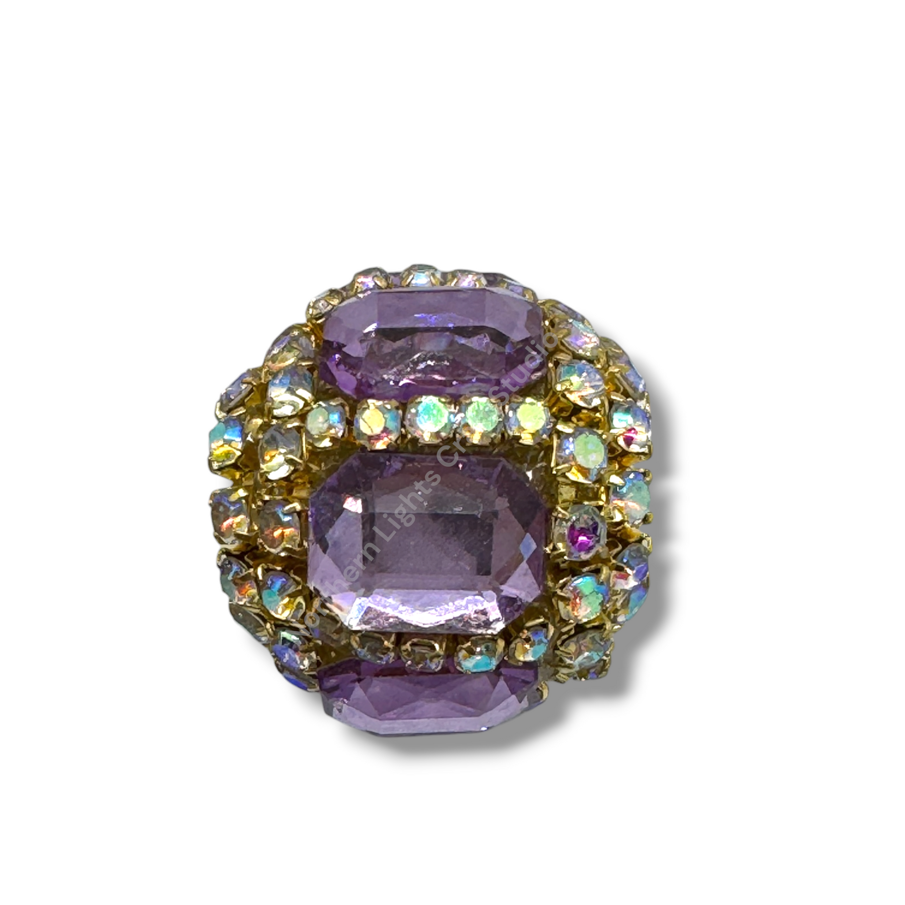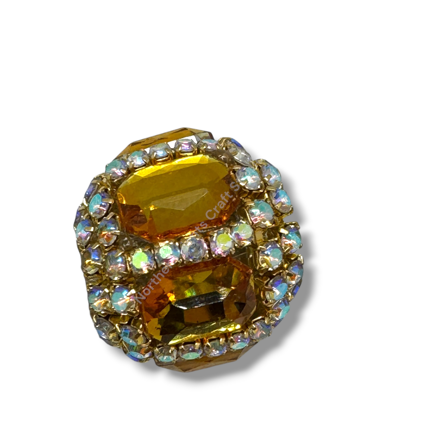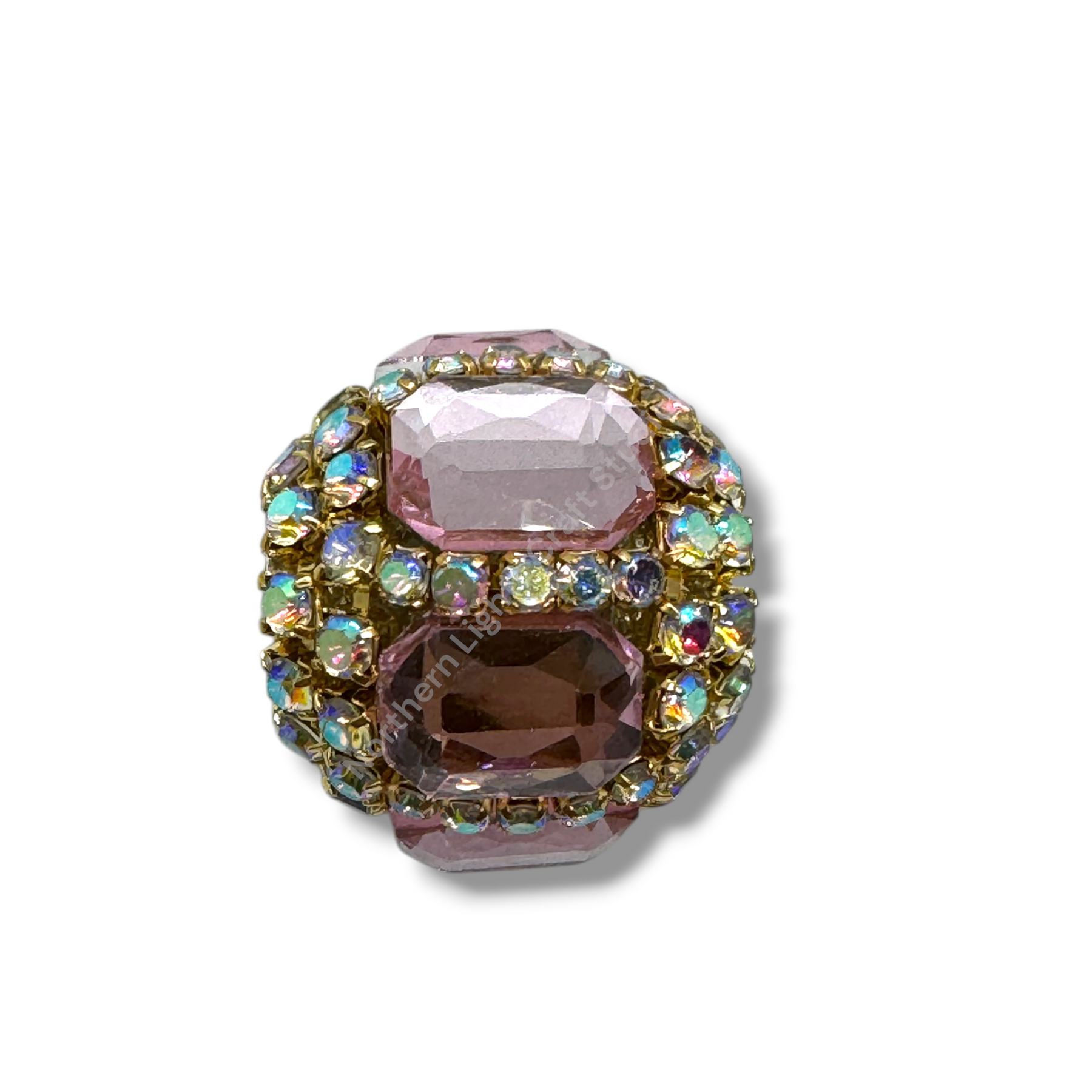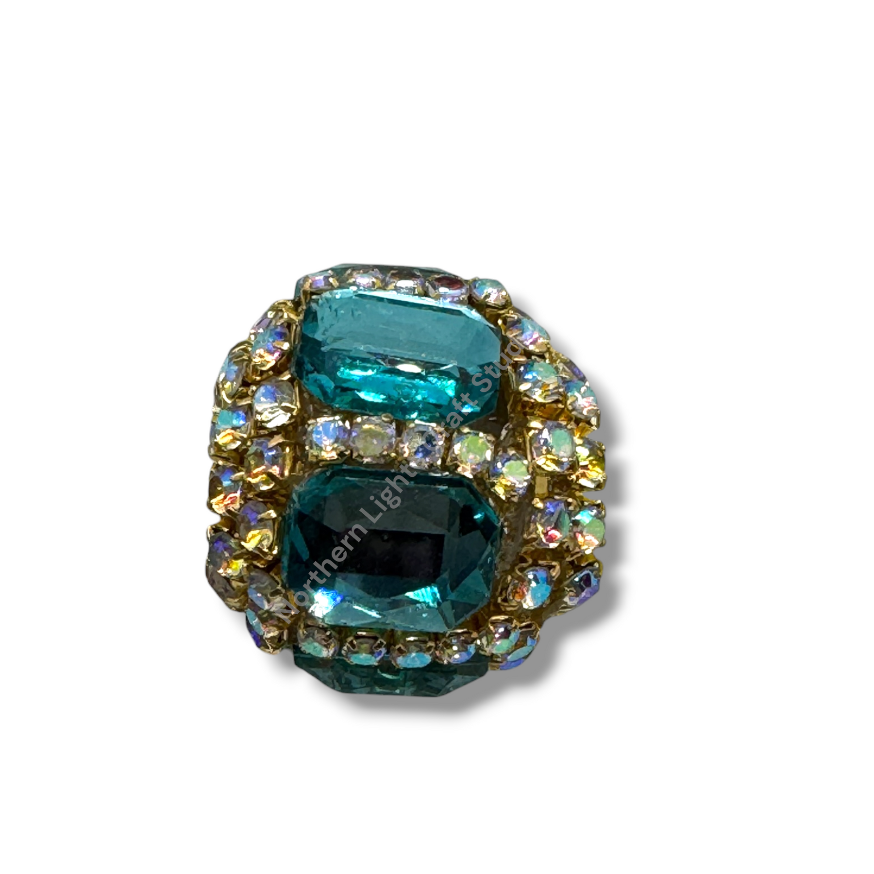 Price is for either three pieces of the same color - you choose, or a 10pc. randomly mixed bag.  Beads feature a rhinestone chain with gold finish and crystals that give these beautiful fancy beads an almost mirror look.  Beads are approximately 17mmx16mm with a 2.7mm hole.