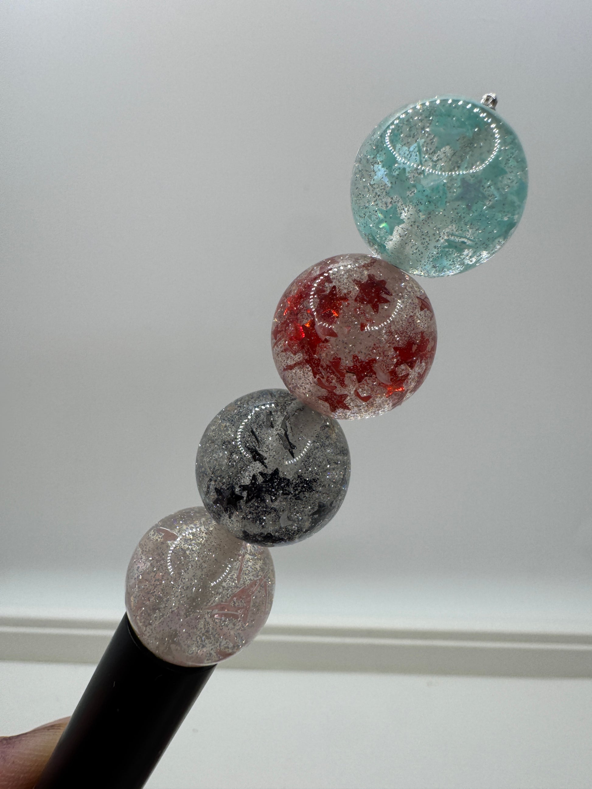 Price is for one randomly picked mixed color pack of 20 beads. Beads are 16mm and are made of acrylic. Beads have silver glitter with foil star sequins inside for extra sparkle!