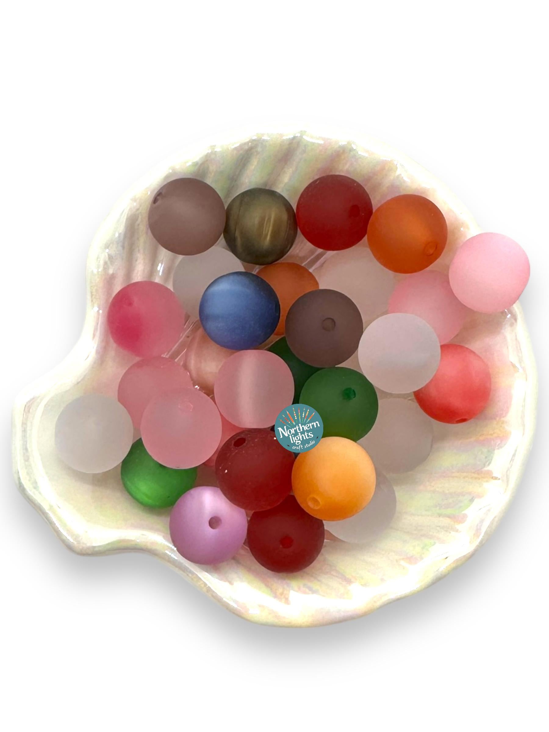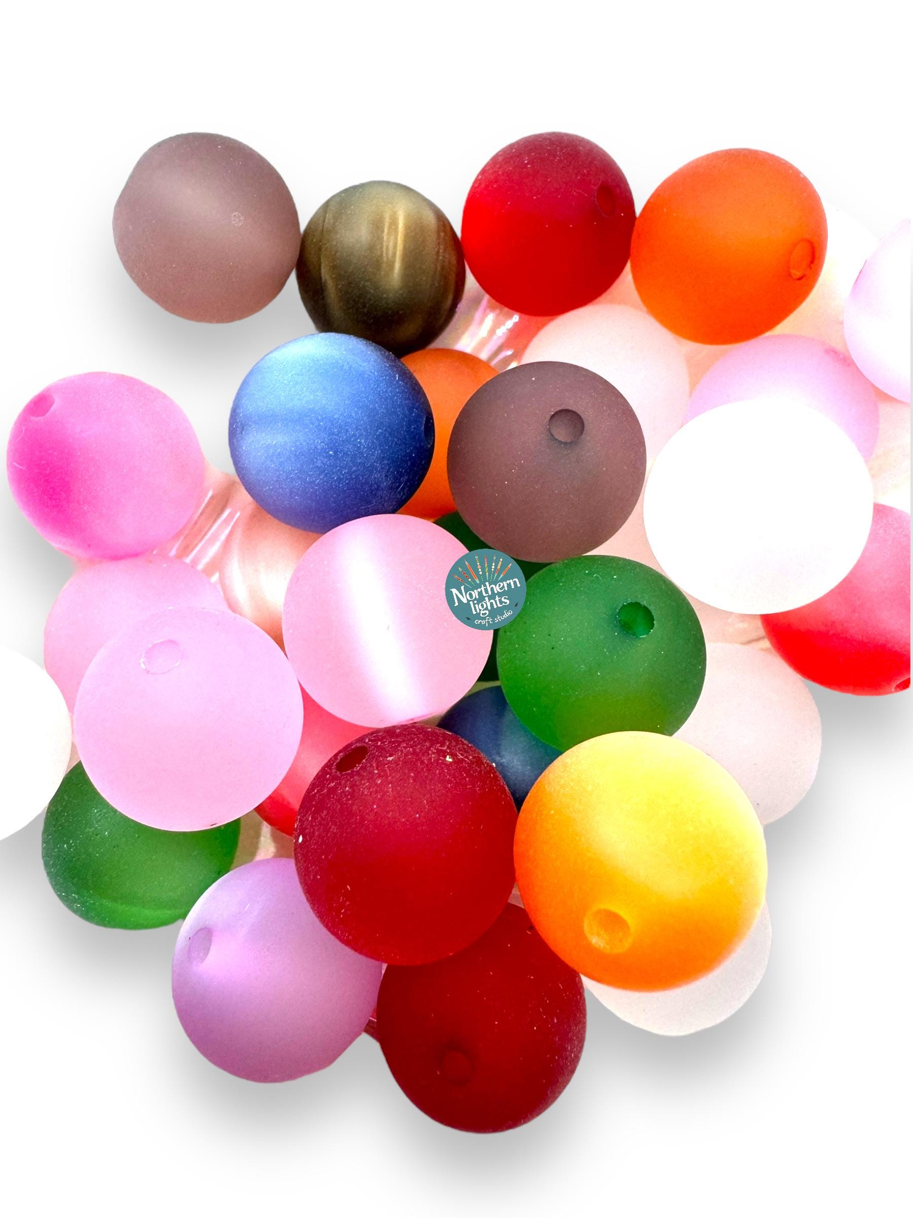 Beads are 16mm. Price is for one pack of 20 beads in a randomly pulled mixed bag of the frosted cat's eye beads. The holes are big enough to fit on beadable pens or beadable bar keychains. They are perfect for jewelry making!