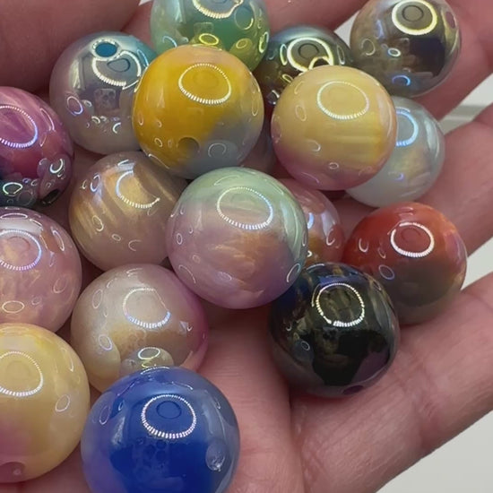 Price is for one mix pack of 20 beads. Beads are 16mm. Price is for one mix pack of 20 beads. The holes are big enough to fit on beadable pens or beadable bar keychains. These stunning beads have a shiny UV coating to give them maximum shine.