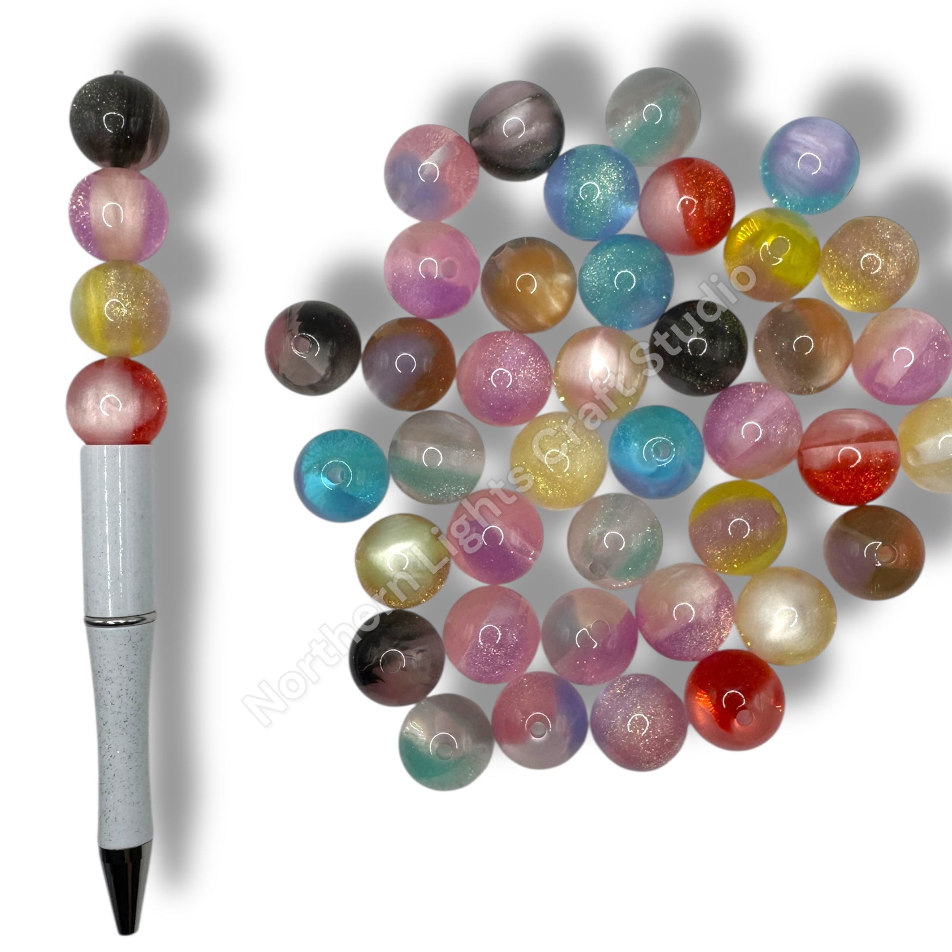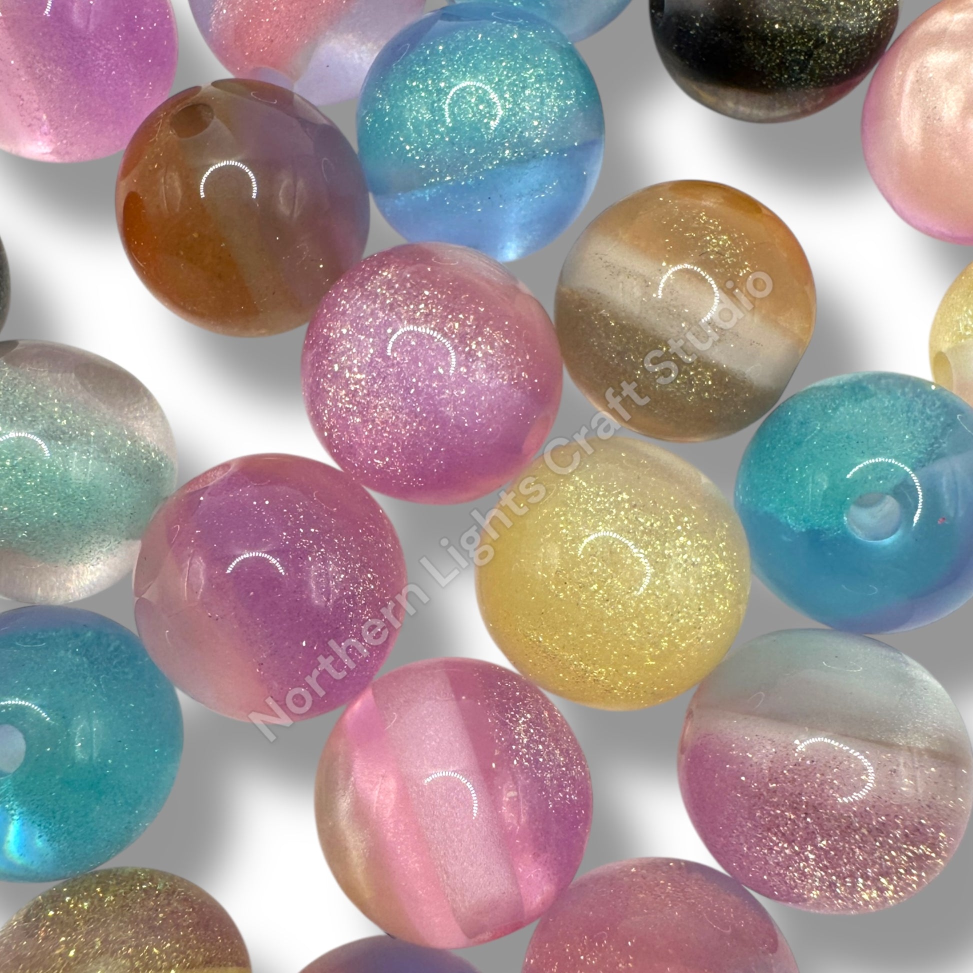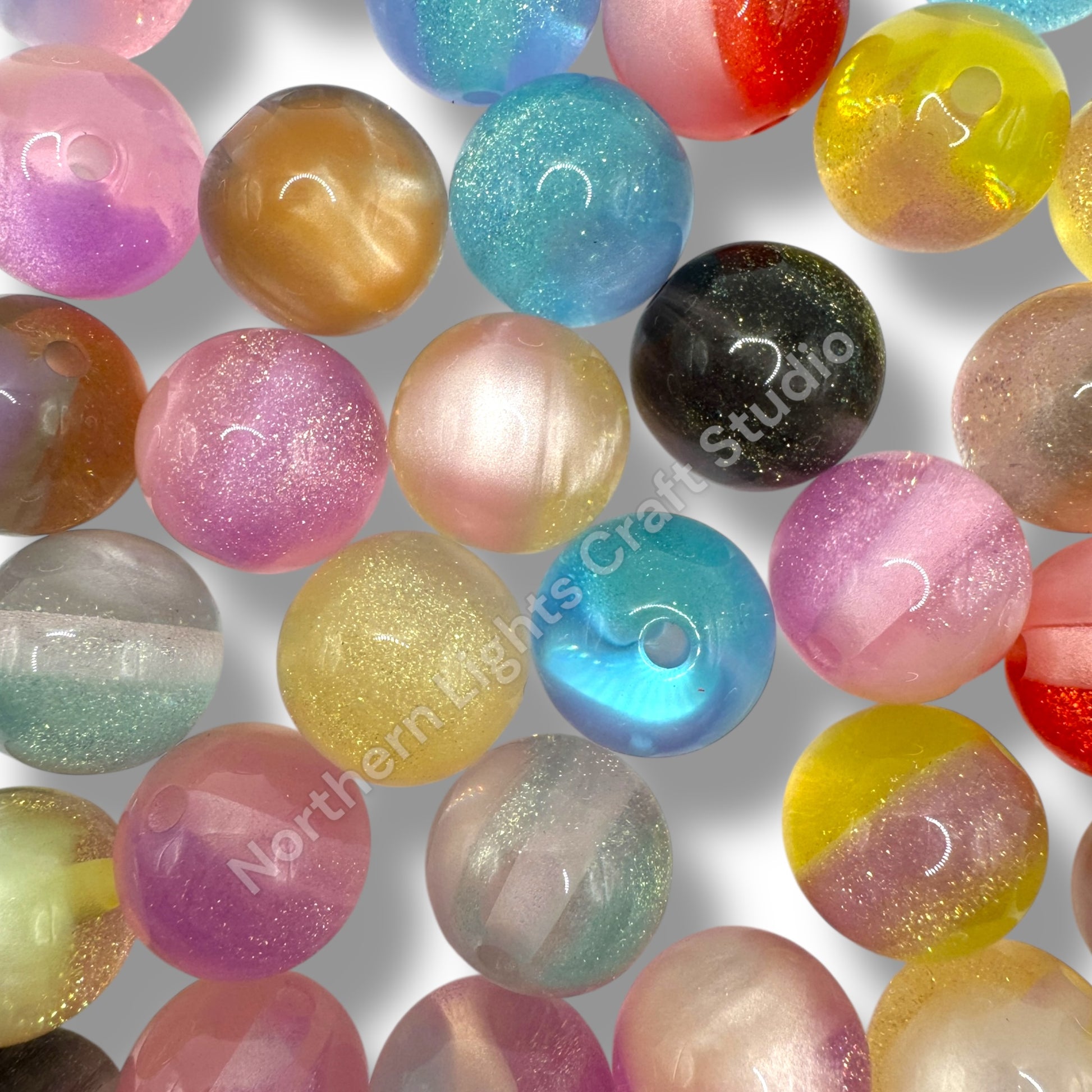 16mm Fine Glitter and Cat's Eye Beads- 20 Pc. Mix