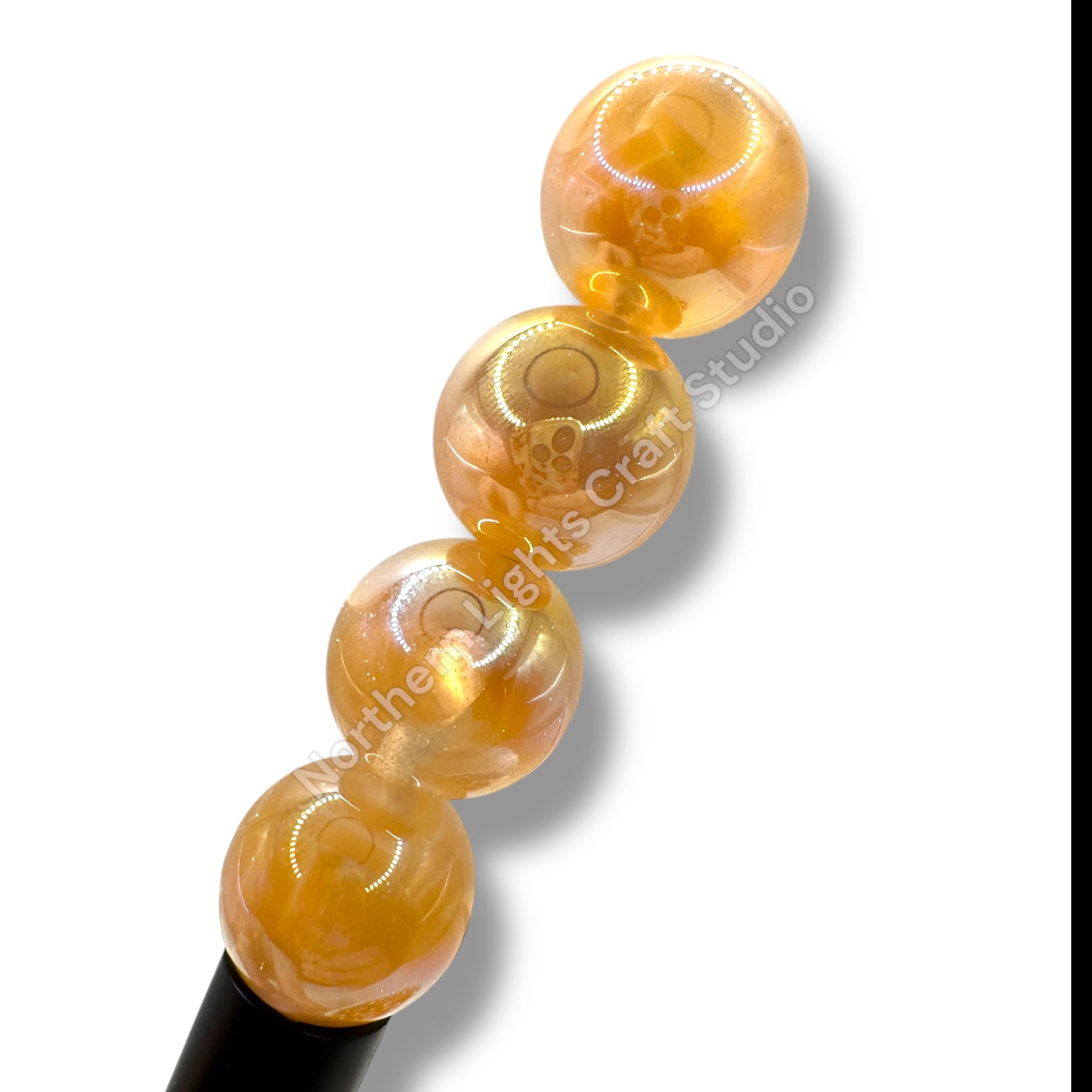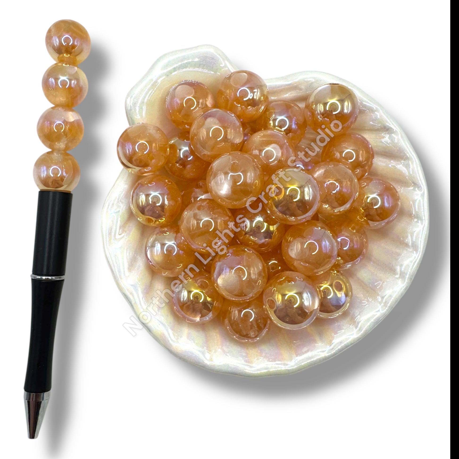 Price is for one pack of 10 golden heart glitter UV beads. Beads are 16mm and are made of acrylic. Heart shapes are inside the bead. Beads have glittler with shiny hearts inside heart. Extra glam!