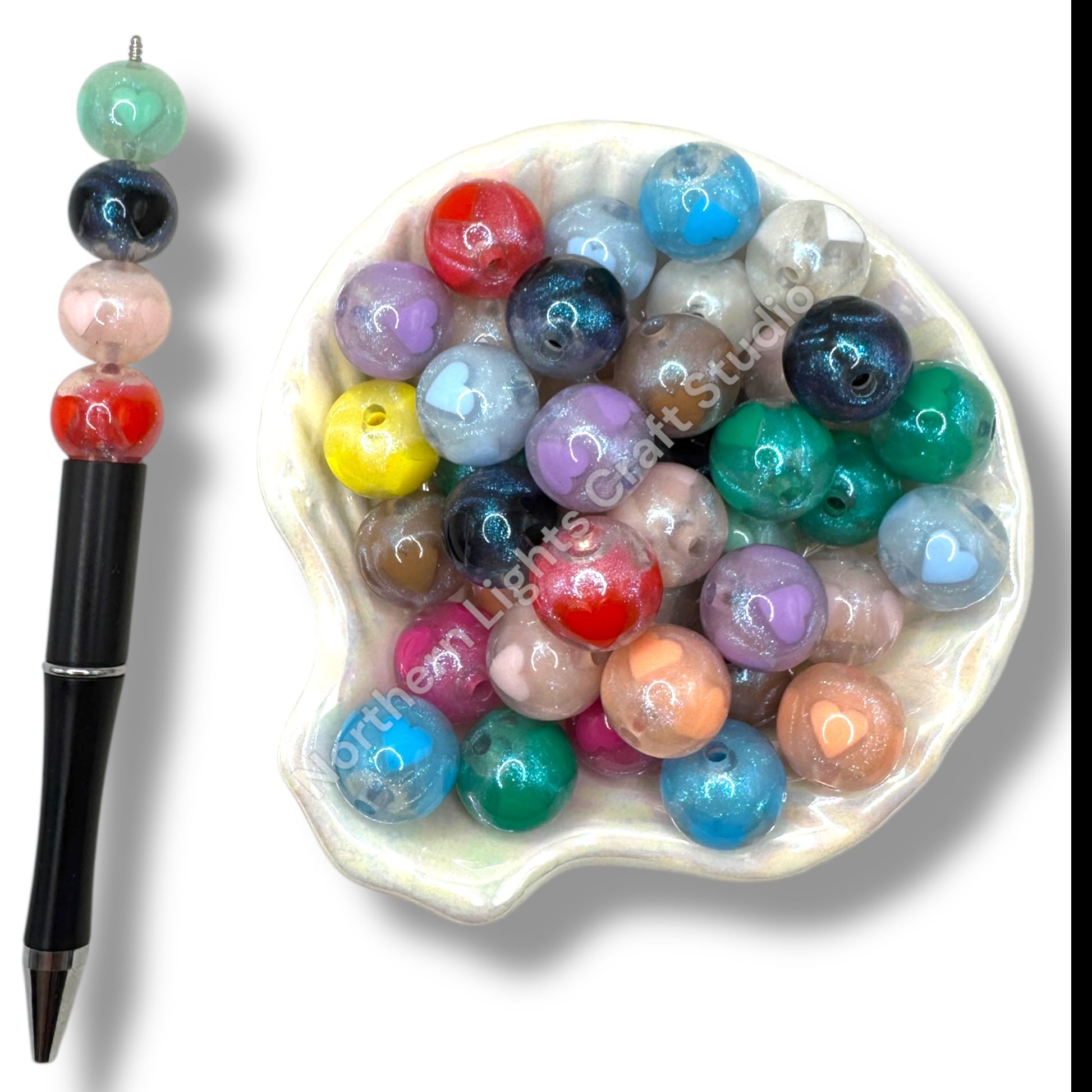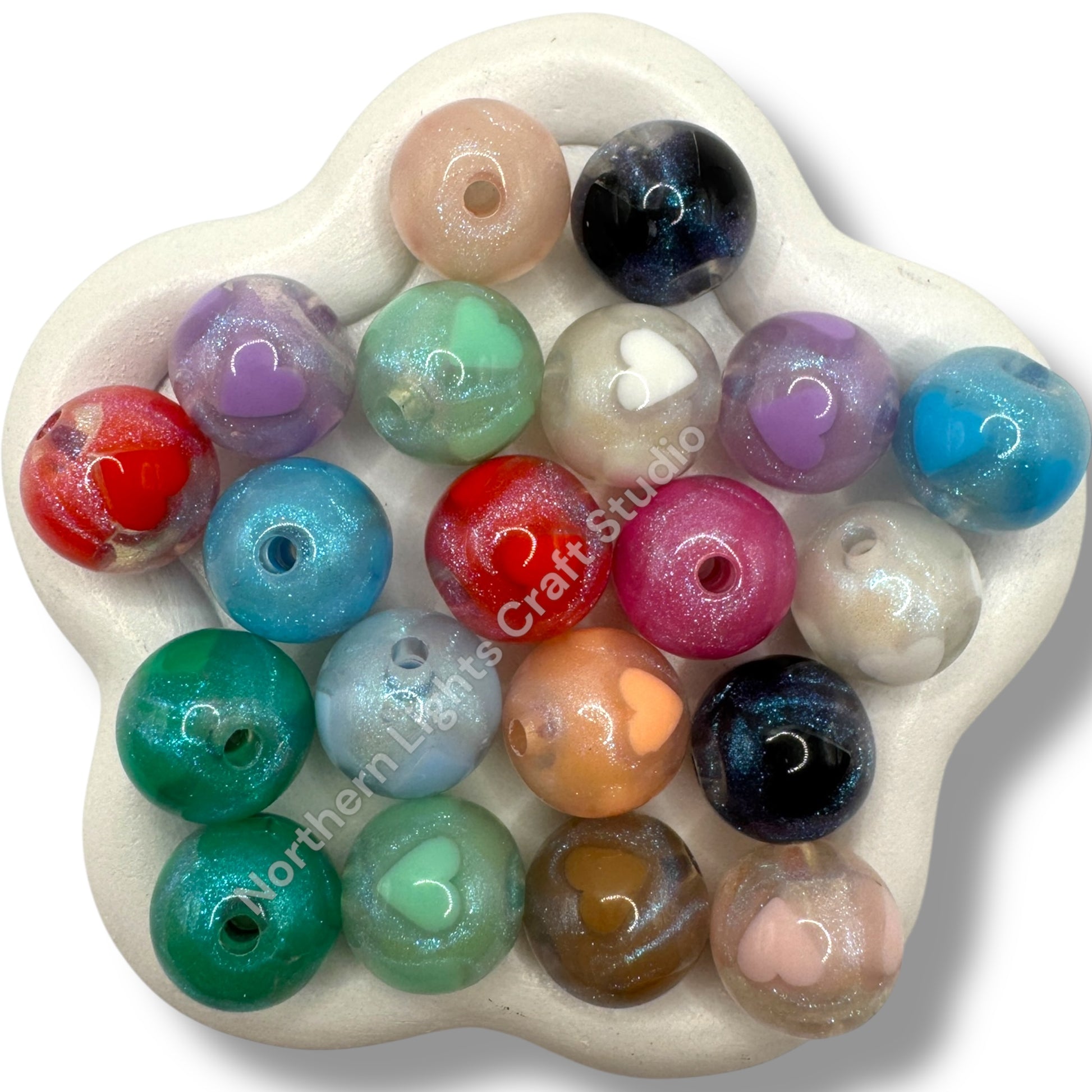 16mm Printed Heart Glitter Bead Mix -20pcs.