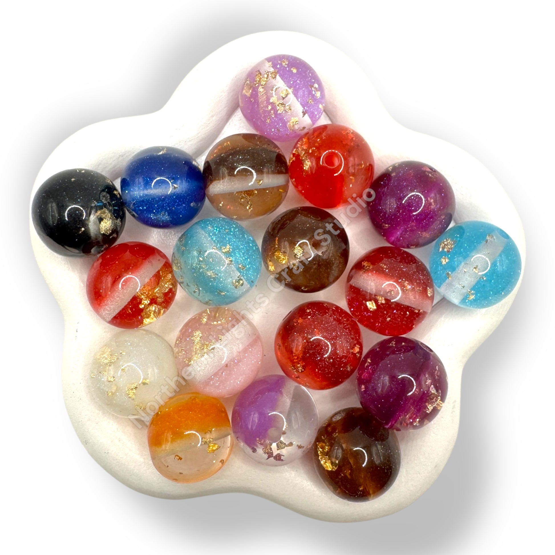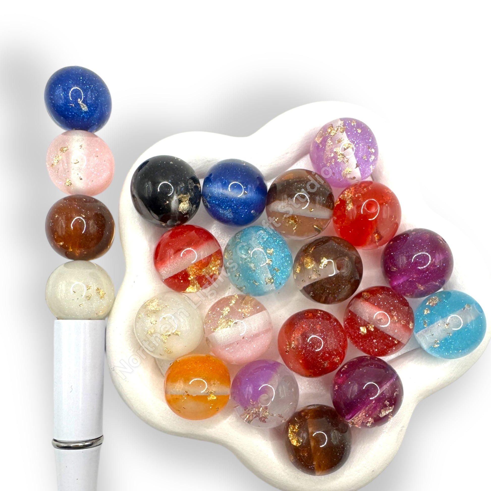 Price is for one 20 piece ranomly mixed bag of 16mm beads. The holes are big enough to fit on beadable pens or beadable bar keychains.