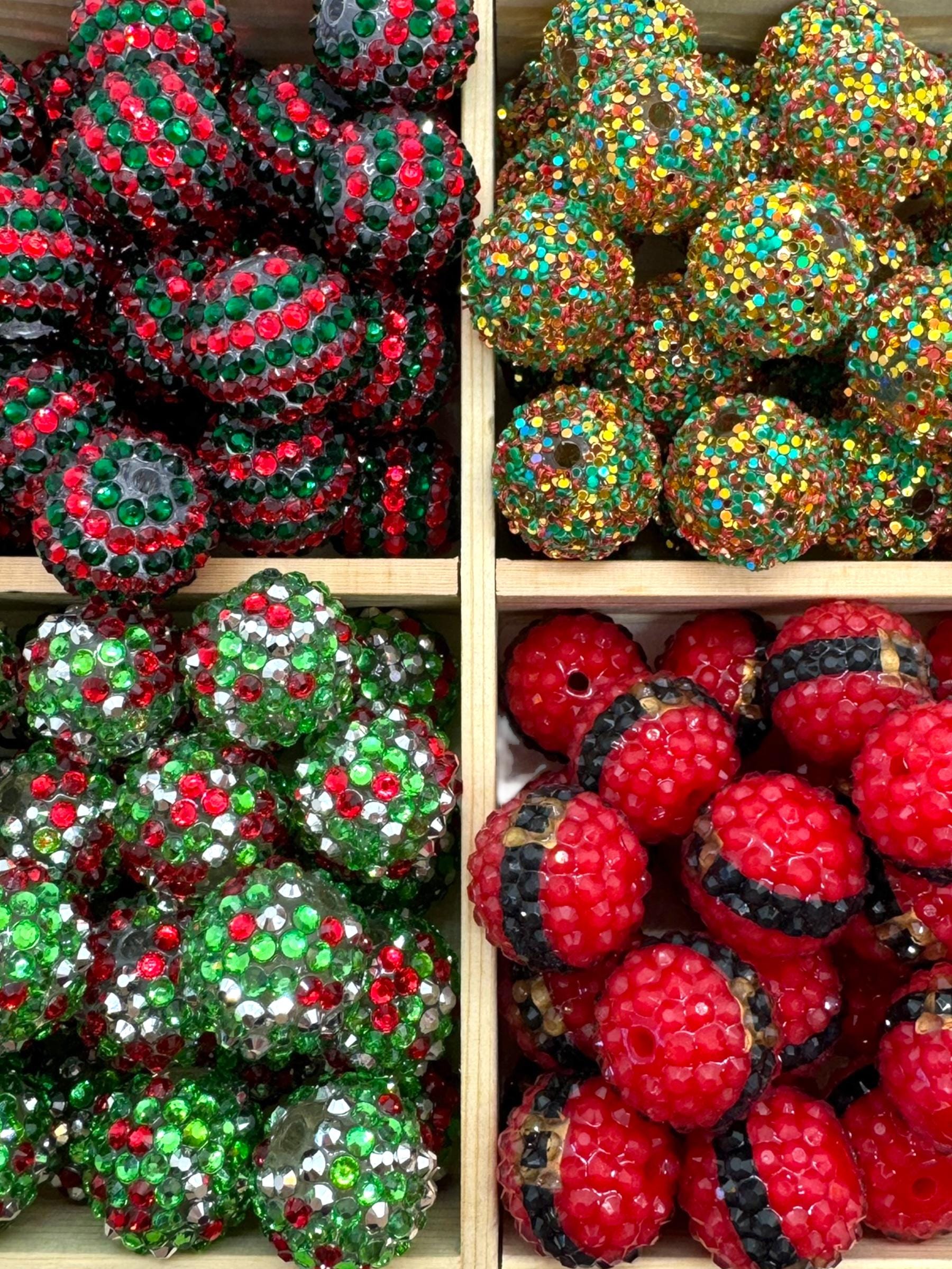 20 mm Christmas Acrylic Rhinestone Beads 10 Piece Packs
