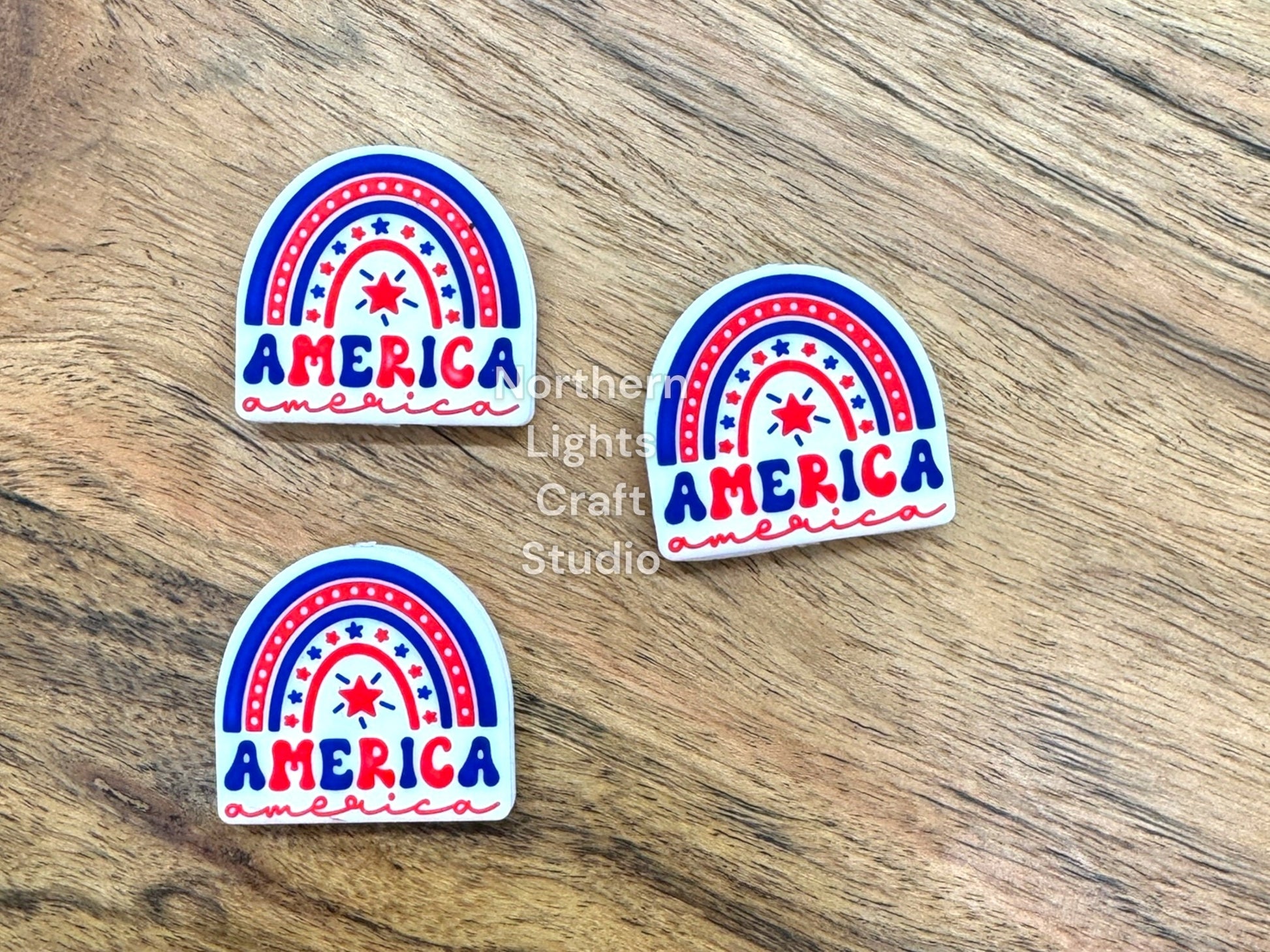 America Rainbow Silicone Focal Bead , USA Focal, Red White and Blue Rainbow, Patriotic Focal, Summer Focal, 4th of July Focal