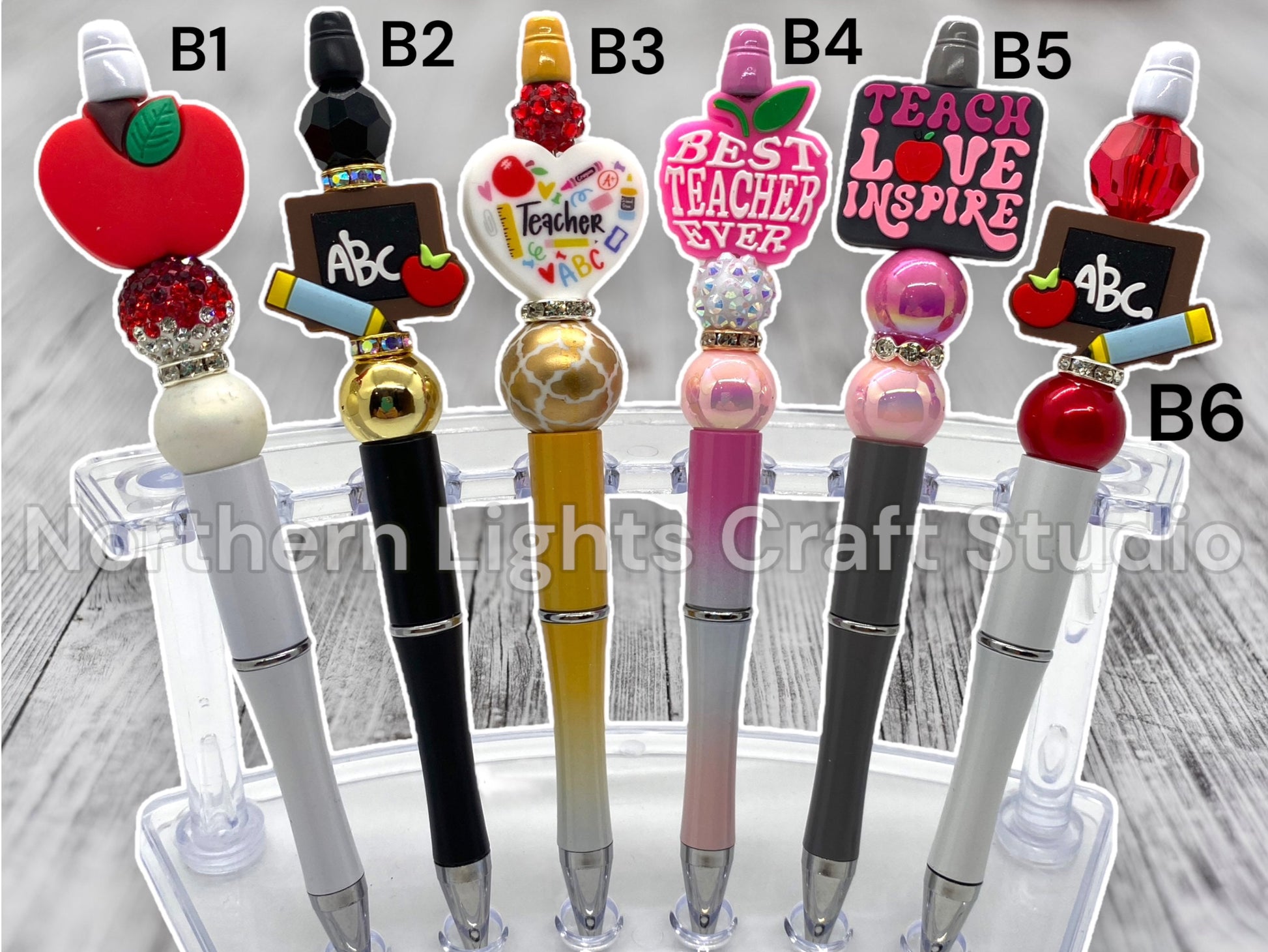 Our collection of Teacher pens are just the thing to add a little fun to the classroom and show your appreciation for the best teacher ever! These plastic pens are handmade, write black ink, and are refillable. Each pen purchased comes with one ink refill. These make the perfect gift for the holidays, teacher appreciation week, or any occasion!