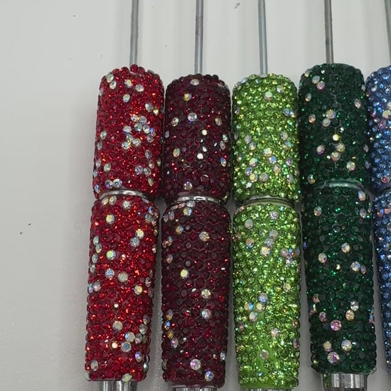 Price is for one pen - this style has silver ab crystals mixed on the color pens for an extra dash of shine. These handmade full rhinestone pens are perfect to bring some sparkle to your crafting day! Pens are created with a clay base on top of the plastic barrel and then rhinestones are placed into the clay. Pens are medium ball point that write 1.0 black ink. Each pen measures approximately 15x146mm (.59in x and 5.74in) and weighs approximately .5 oz. Pens are refillable with Beadable Pen refills which are available on our site in either blue or black colors. Note that over the counter refills will not work with these.