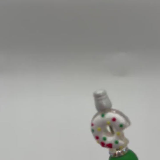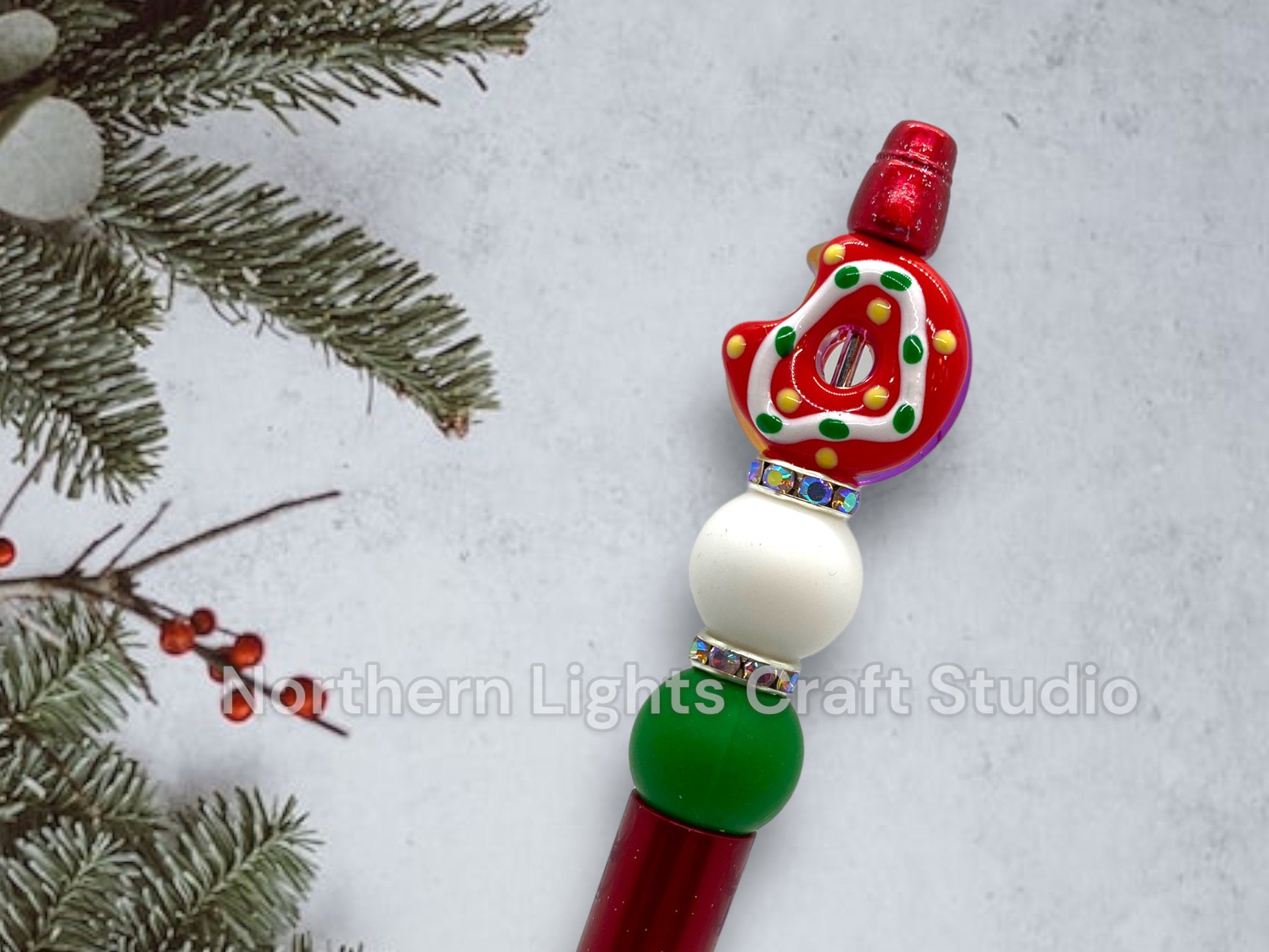 Our collection of Christmas pen are just the thing to add an little cozy sparkle to your desk! The donut beads are handmade. These pens are handmade, write black, and are refillable. These make the perfect stocking stuffer gift! Each pen purchased comes with one ink refill.