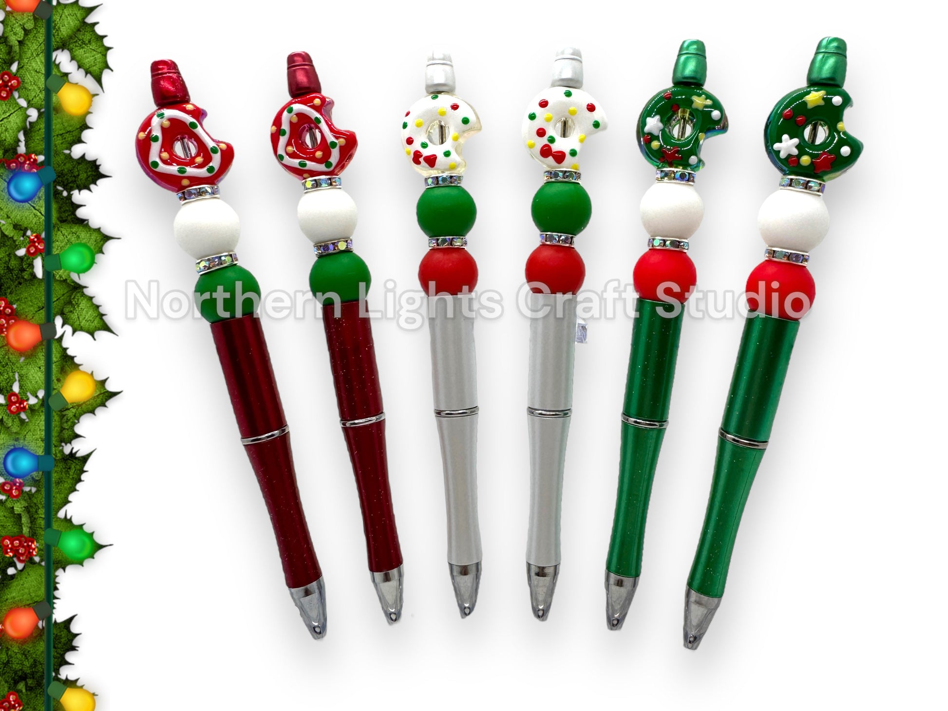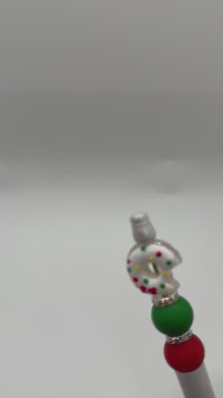 Beaded Christmas Donut Pen, Beaded Pens, Handmade Beads, Coffee and Dessert Theme, Coffee and Donuts Gift Ideas, Handmade Pen Beads