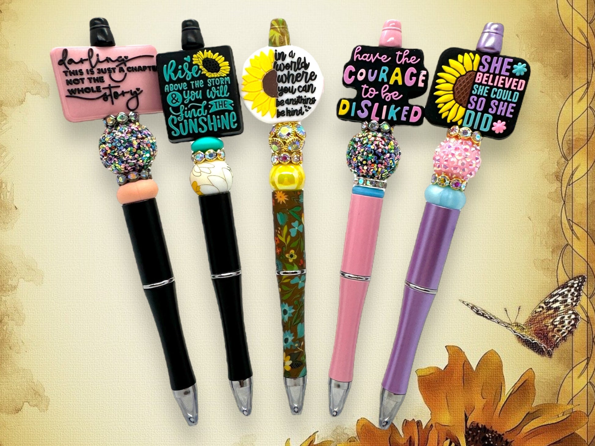 Beaded Mindset Pen, Just a Chapter, Rise Above the Storm, Be Kind, Like a Butterfly, Have the Courage to be Disliked, She Believed She Could