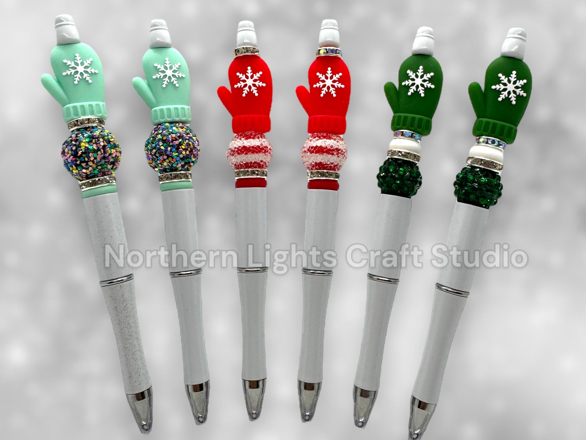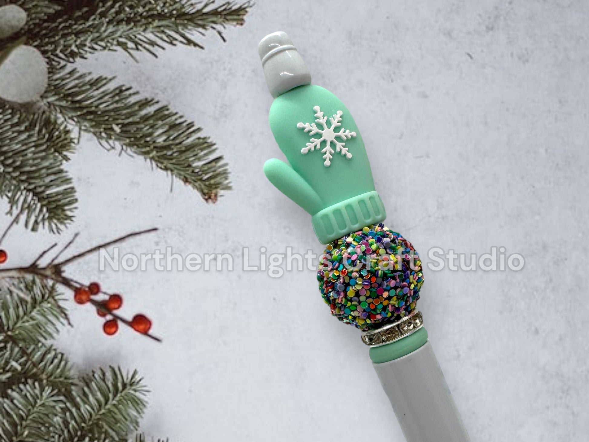 Beaded Mitten Pens, Custom Beaded Mitten Pen, Winter Mitten Gift, Stocking Stuffer Ideas, Baby It's Cold Outside, Rhinestone Mitten Pen