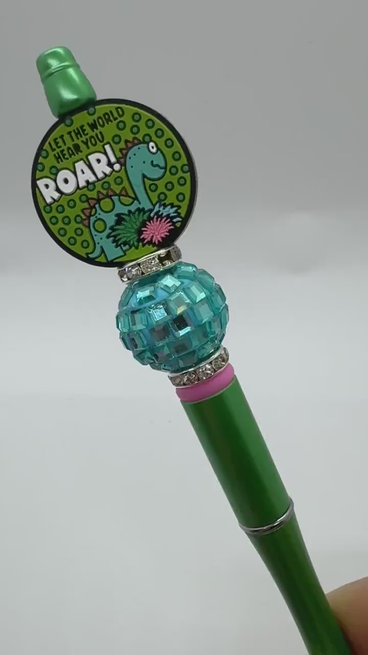 Our collection of custom beaded pens are just the thing to add an little inspirational fun and sparkle to your desk! The pens are handmade, write with black ink, and are refillable! Each pen purchased comes with one refill-either black or blue. Listing is for one pen. We try to accurately depict colors in photos, but there may be a slight difference to the actual pen due to photography, lighting, and screen settings.