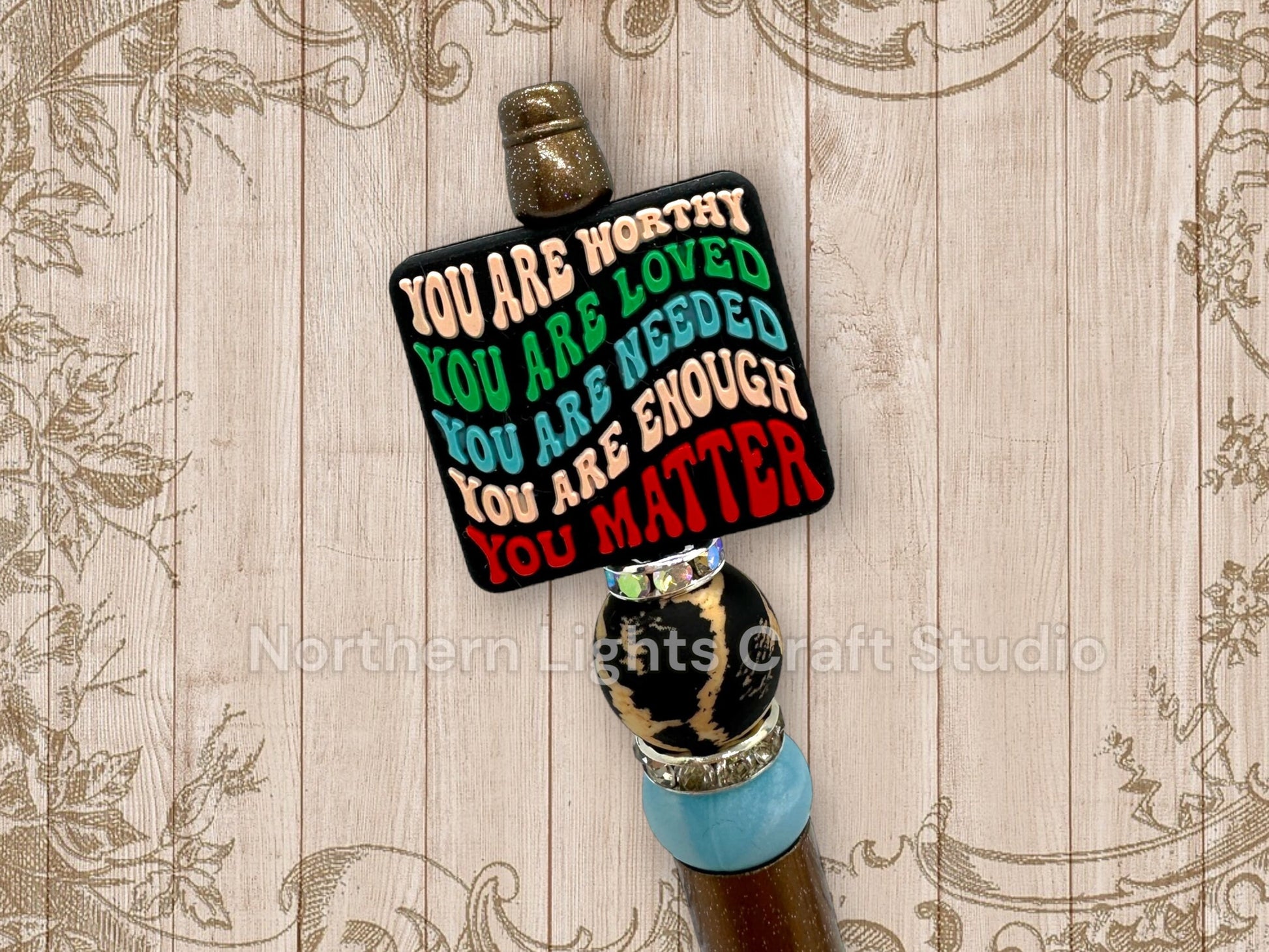 Beaded Positivity Pen, You are Worthy You are Loved, Be Yourself Everyone Else is Taken, Do What Makes You Happy