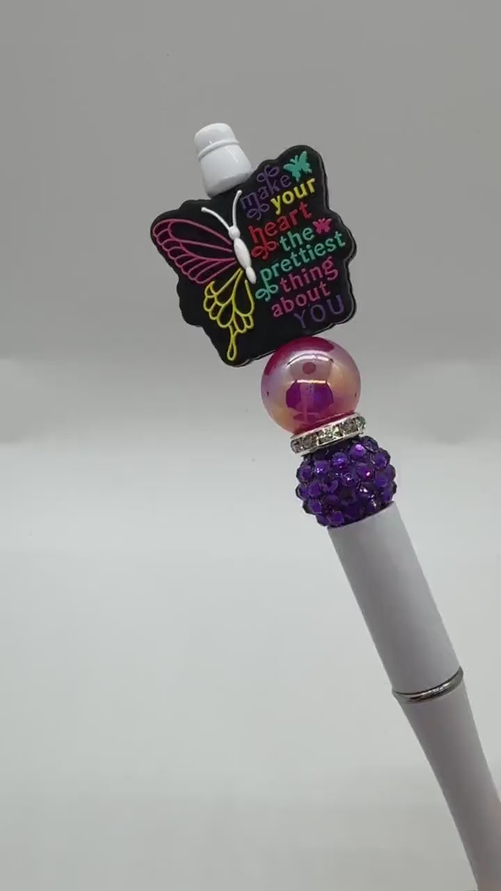 Our collection of custom beaded pens are just the thing to add an little inspirational fun and sparkle to your desk! The pens are handmade, write with black ink, and are refillable! Each pen purchased comes with one refill-either black or blue. Listing is for one pen. We try to accurately depict colors in photos, but there may be a slight difference to the actual pen due to photography, lighting, and screen settings.