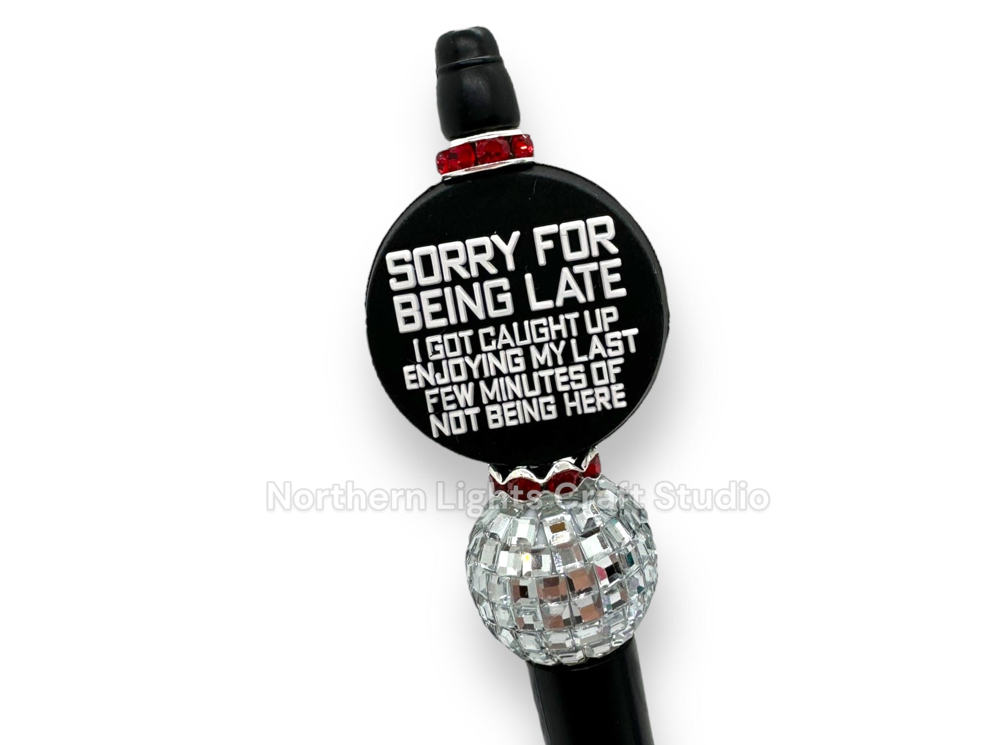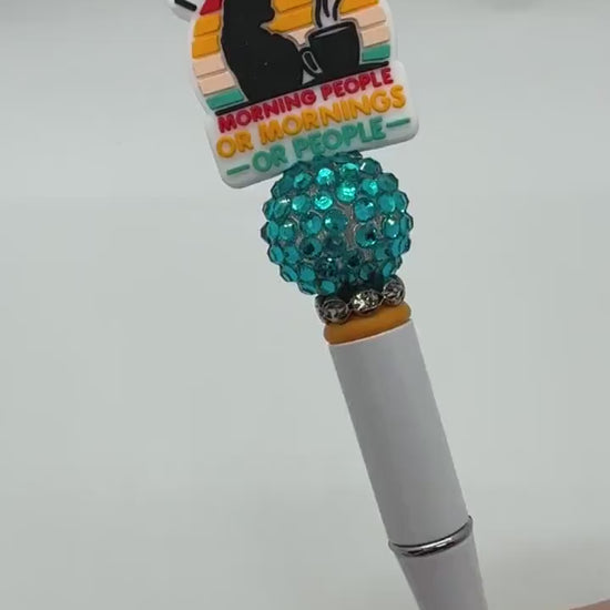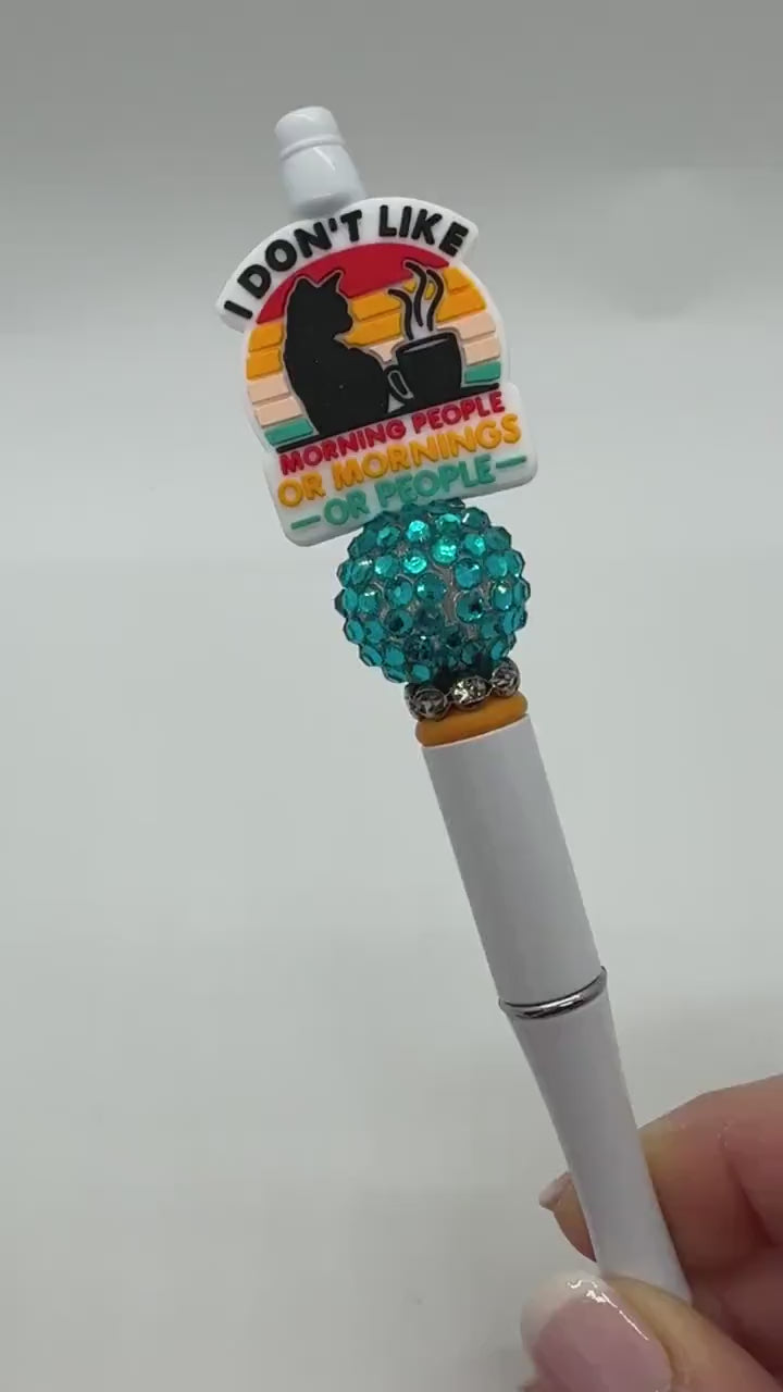 Our collection of custom beaded pens are just the thing to add an little sarcastic wit and to your desk! The pens are handmade, write with black ink, and are refillable! Each pen purchased comes with one refill. Listing is for one pen. We try to accurately depict colors in photos, but there may be a slight difference to the actual pen due to photography, lighting, and screen settings.