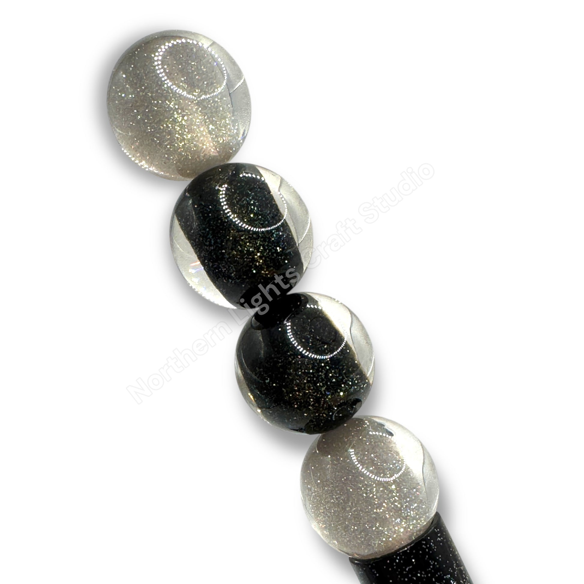 Price is for one pack of 20 mixed 16mm beads. Beads filled with a stunning glittery luminous core. Holes are big enough to fit pen. Each pack comes with 10 black and 10 gray beads.