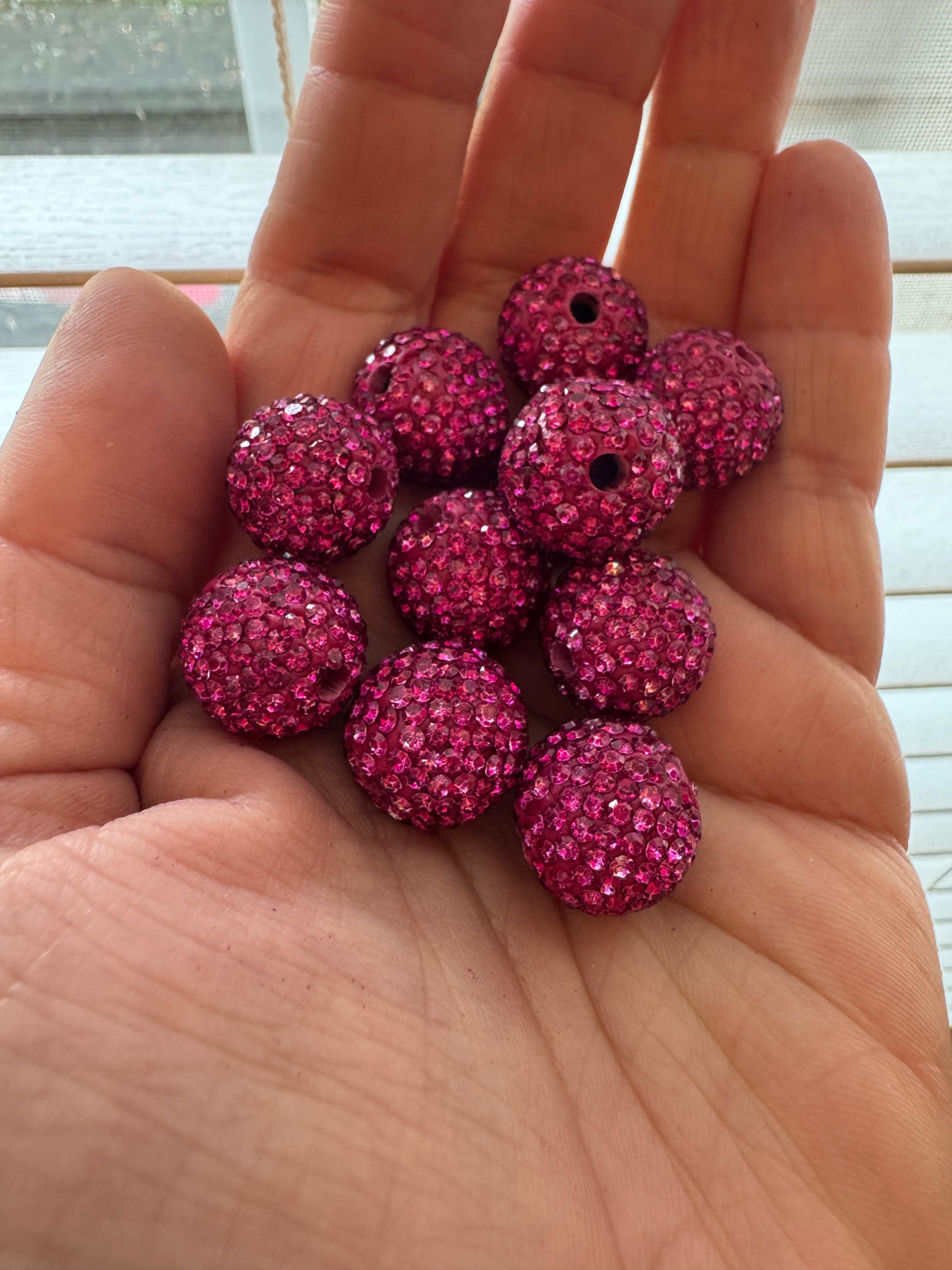 Hot Pink Rhinestone Beads-16mm - 10pc.