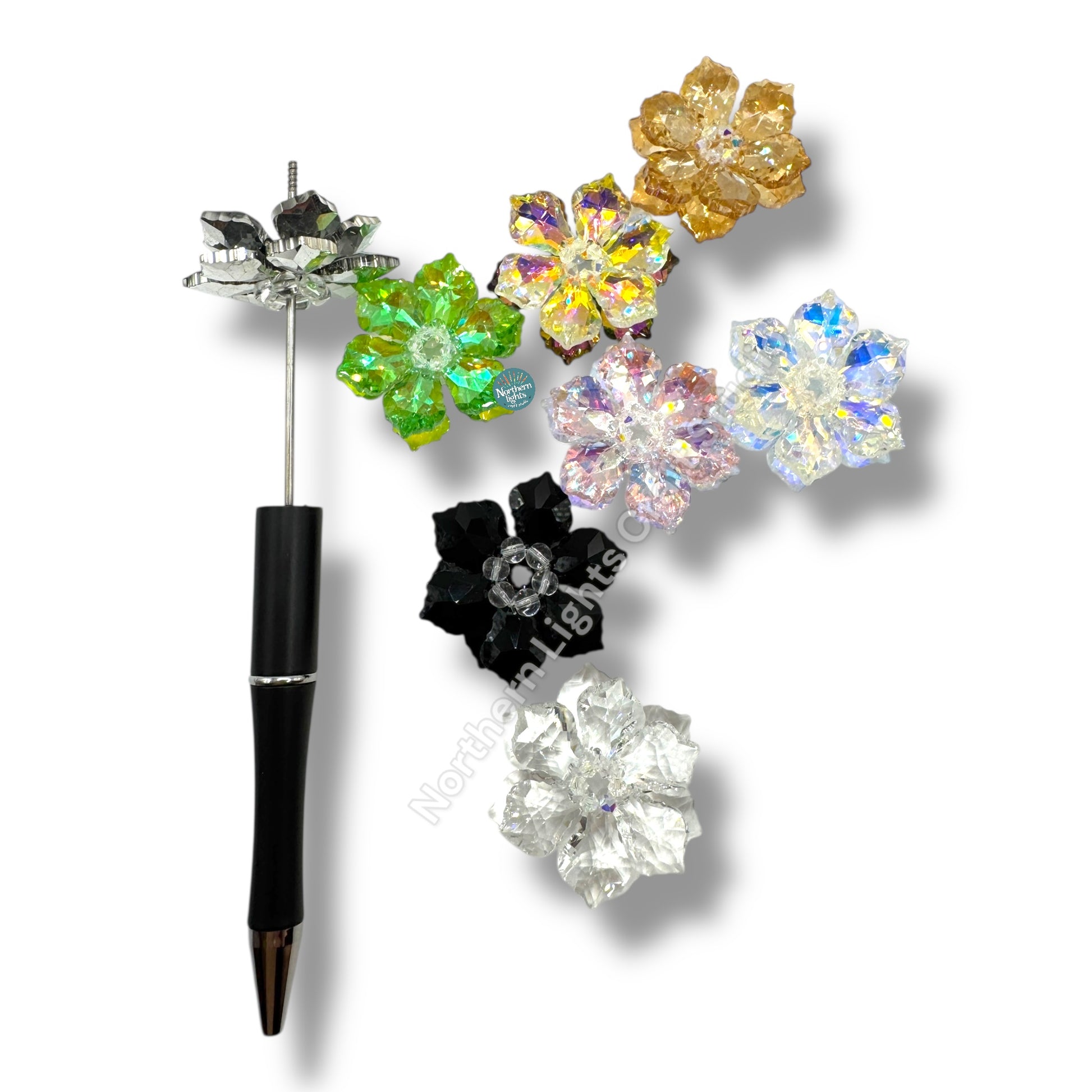 Pen not included. This handmade glass crystal flower bead features a double-layer design with six petals per layer, creating exceptional depth and brilliance. Its reinforced center hole ensures durability, making it ideal for beadable pens and keychains. Measuring 40mm, this bead combines craftsmanship and strength, delivering both aesthetic appeal and reliable performance in your jewelry or accessory projects. This bead has been handmade, and the size may vary slightly.
