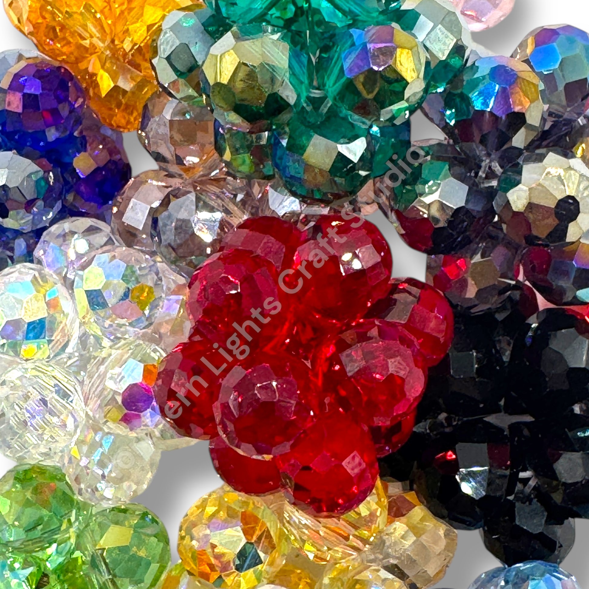 Price is for a 10pc. mix of crystal knotted water drop beads in a 20mm size -colors chosen at random. These hand knotted 16mm beads are the ultimate bling bead and are made of glass crystal teardrops knotted to form a beautiful 16mm bead. The holes are big enough to use on pens and keychains.