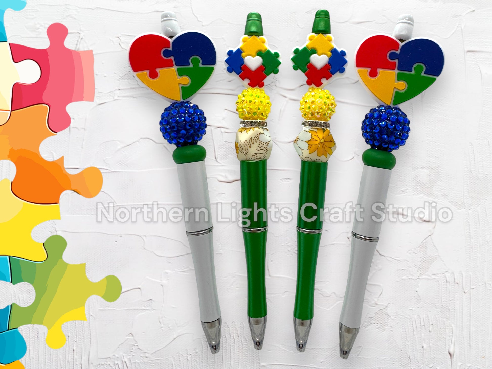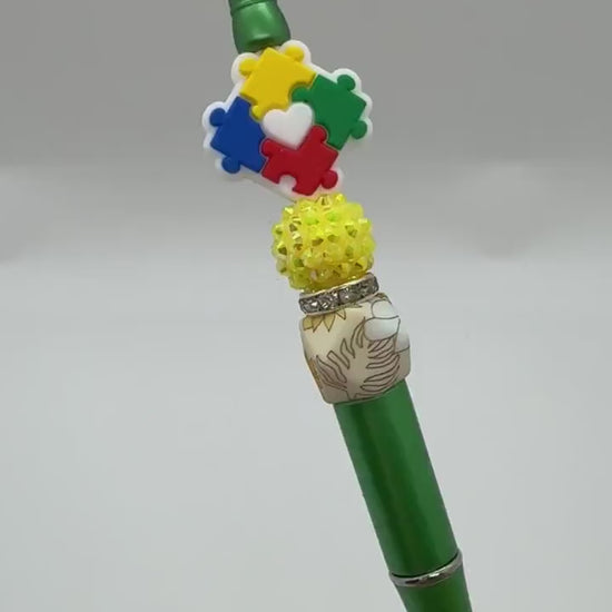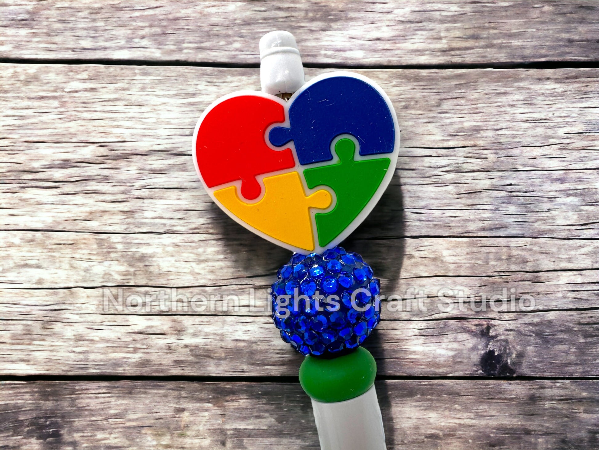 Custom Beaded Autism Awareness Pen, Autism Awareness Puzzle Bead Pen, Autism Therapist Gift Idea, Autism Support Pen