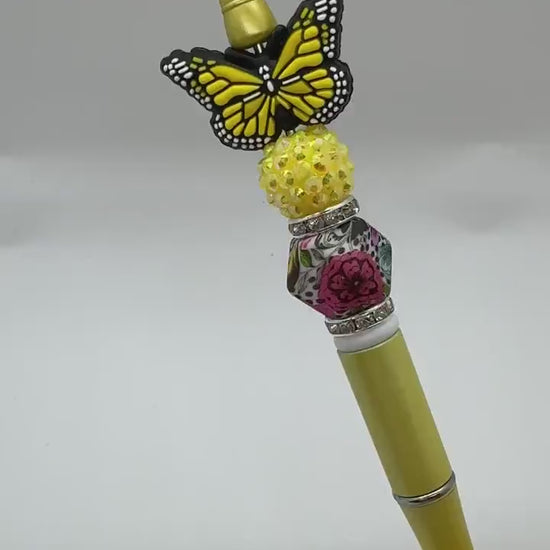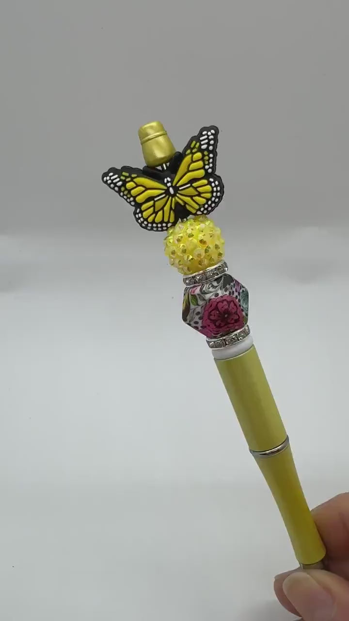 Custom Beaded Butterfly Pen, Butterfly Bead Pen, Bling Pen, Cute Pen, Spring Pen, Inexpensive Stocking Stuffer, Silicone Focal Pen