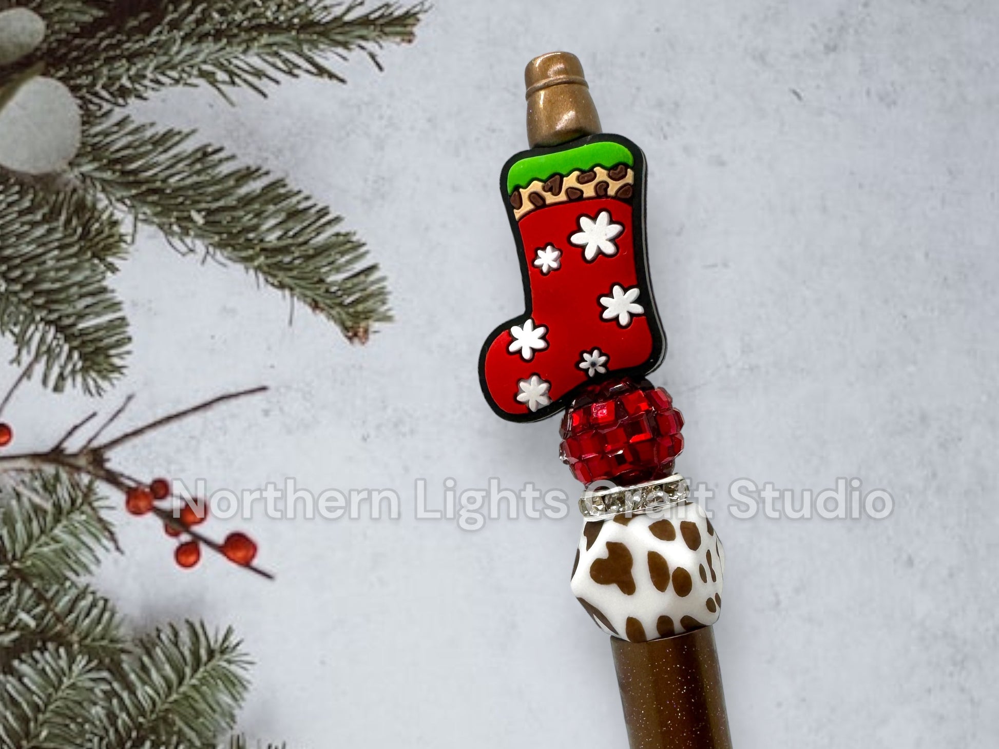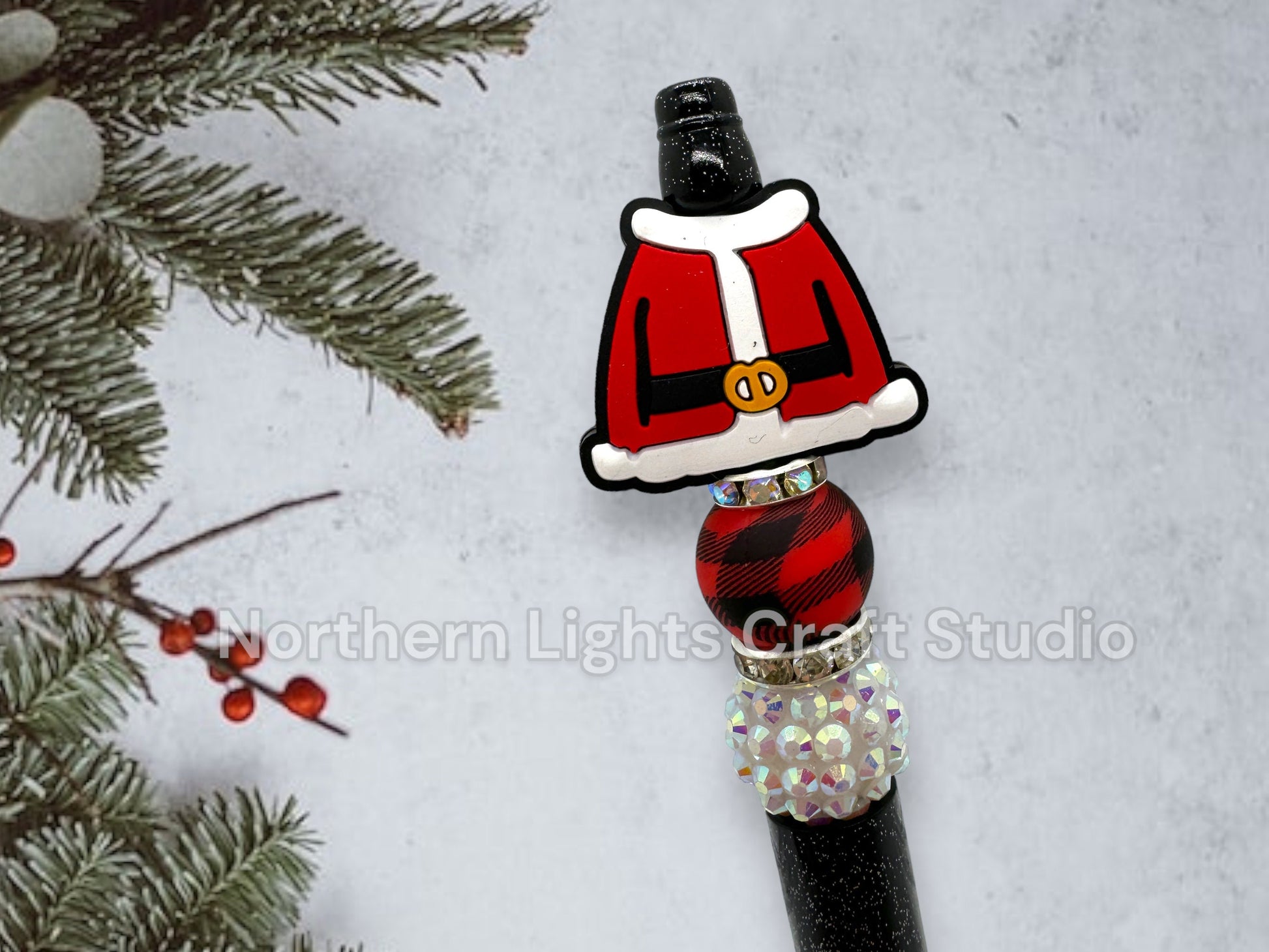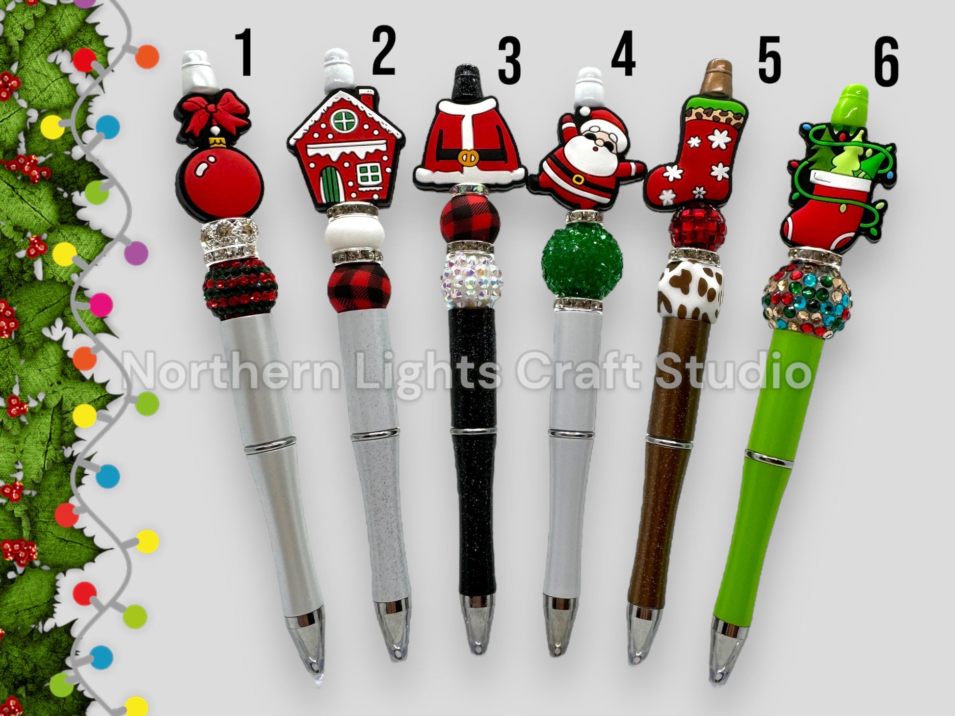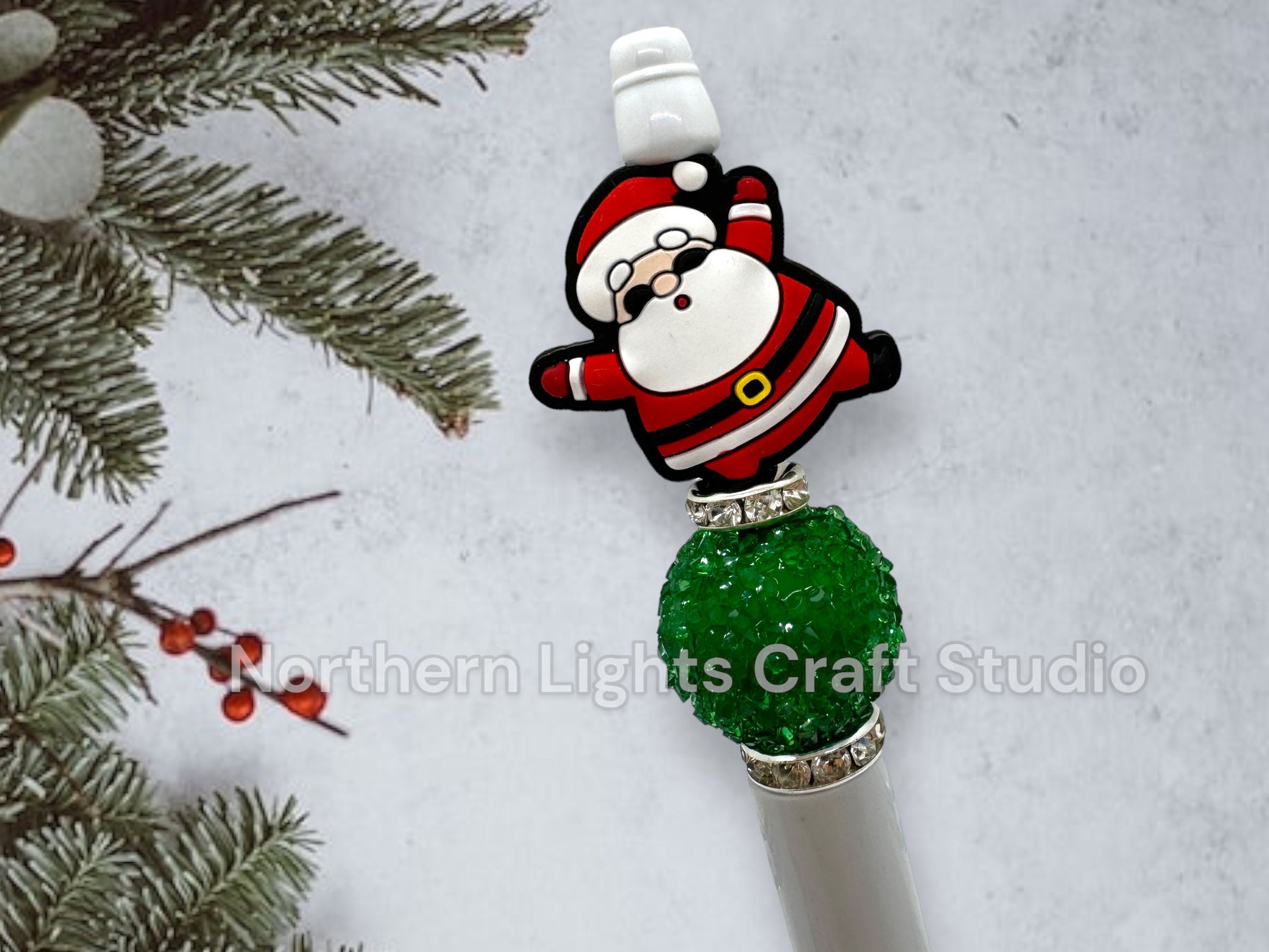 Custom Beaded Christmas Pen, Christmas Bling Pen, Santa Gift, Santa's Coat, Dancing Santa, Cute Stocking Stuffer, Santa's Workshop
