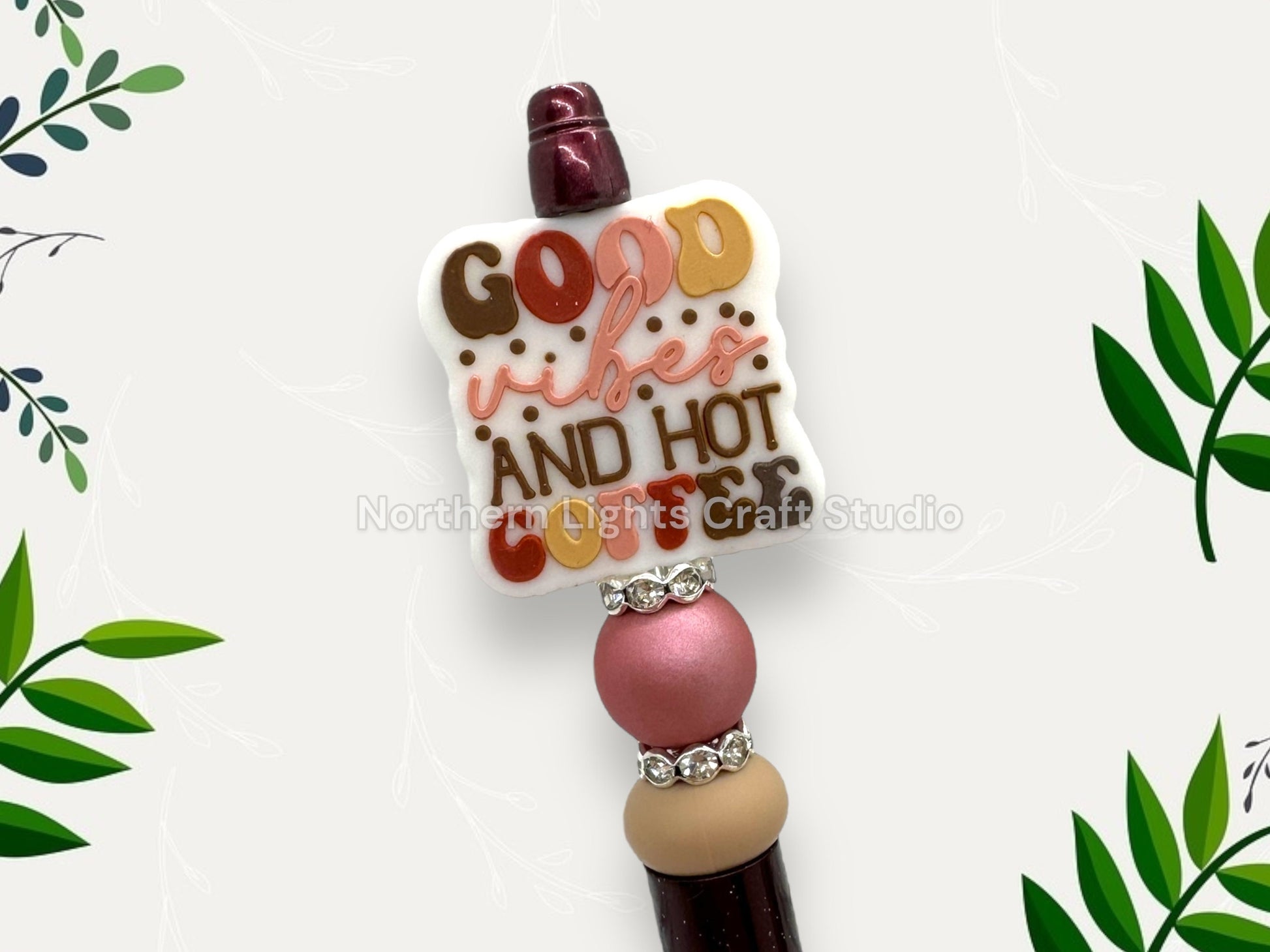 Custom Beaded Coffee Pen, Gourme Coffee Pen Gift, Good Vibes Hot Coffee, Coffee Owns Me Pen, No Talkie Before Coffee Pen, Caffeine Kindness