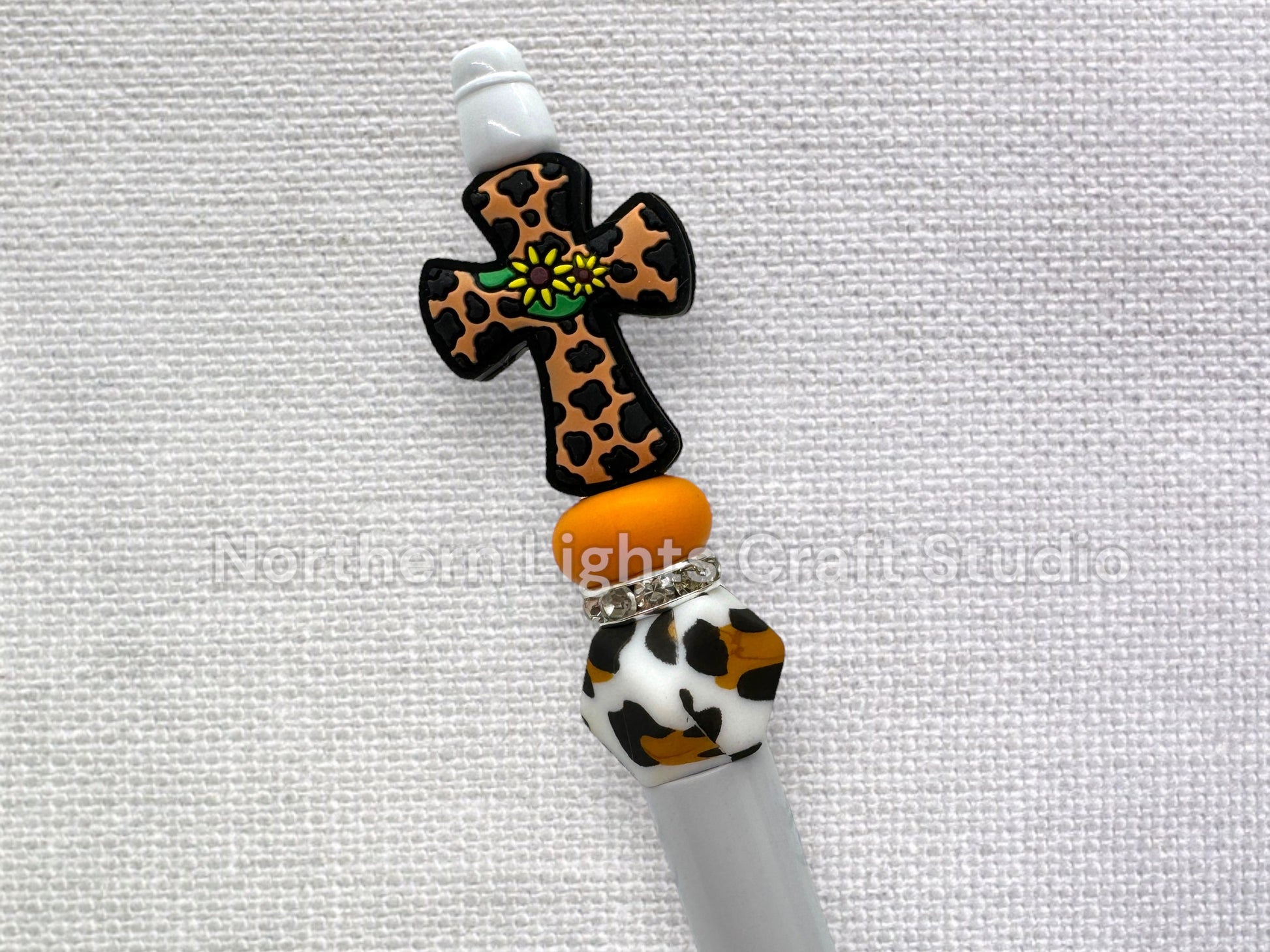 Custom Beaded Cross Pen, Silicone Cross Pen, Leopard Print Cross Pen, Faith Pen, Handmade Cross Gift, Religious Pen, Handmade Cross Pen