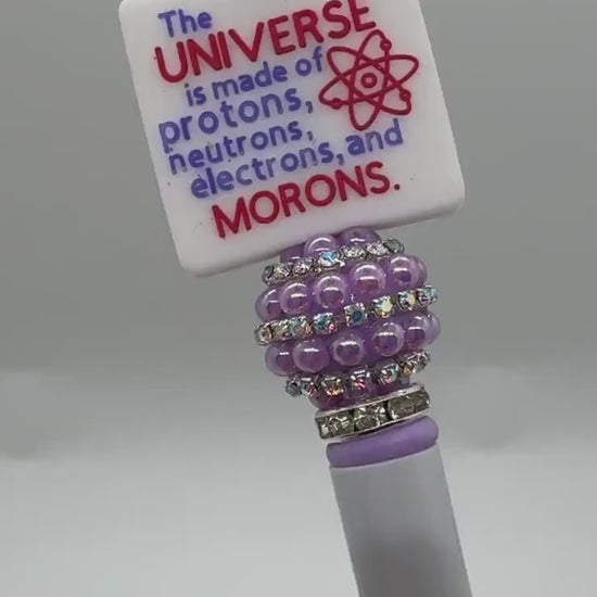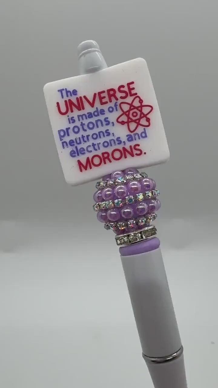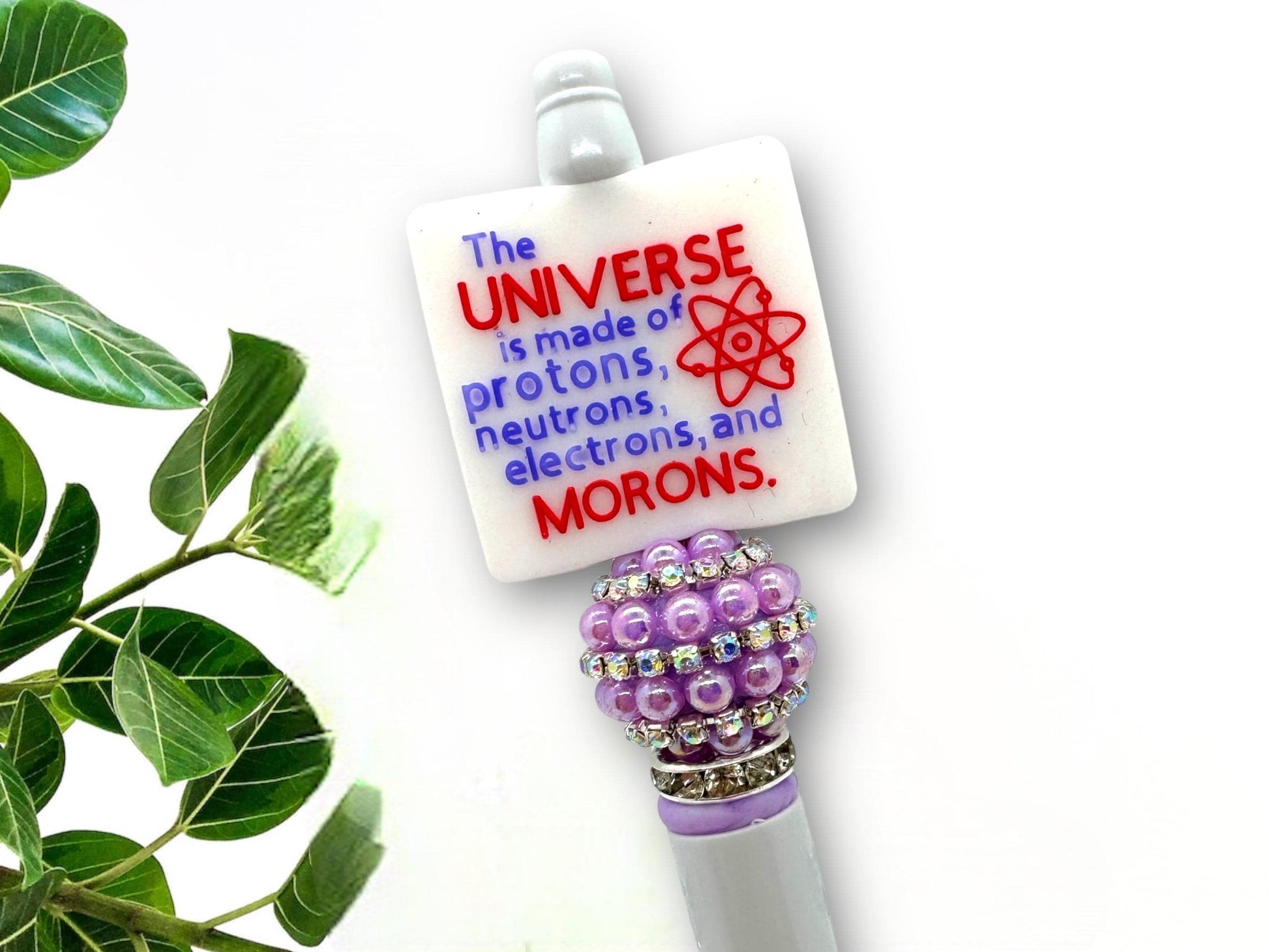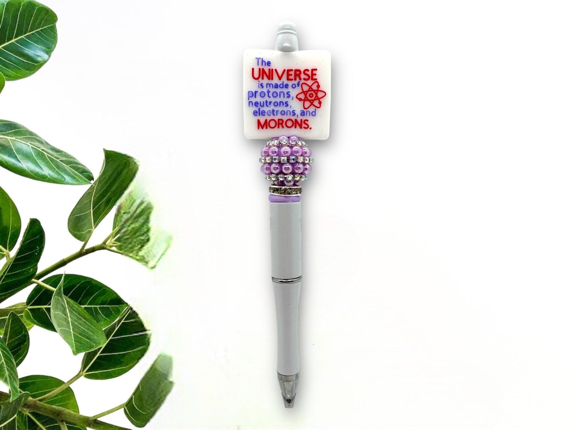 Custom Beaded Funny Sarcastic Pen - The Universe is Made of Protons, Neutrons, Electrons, and Morons Silicone Focal Bead Pen