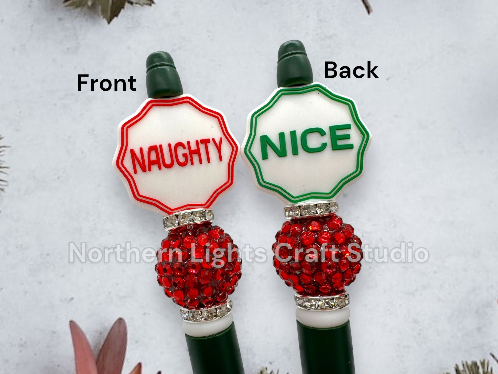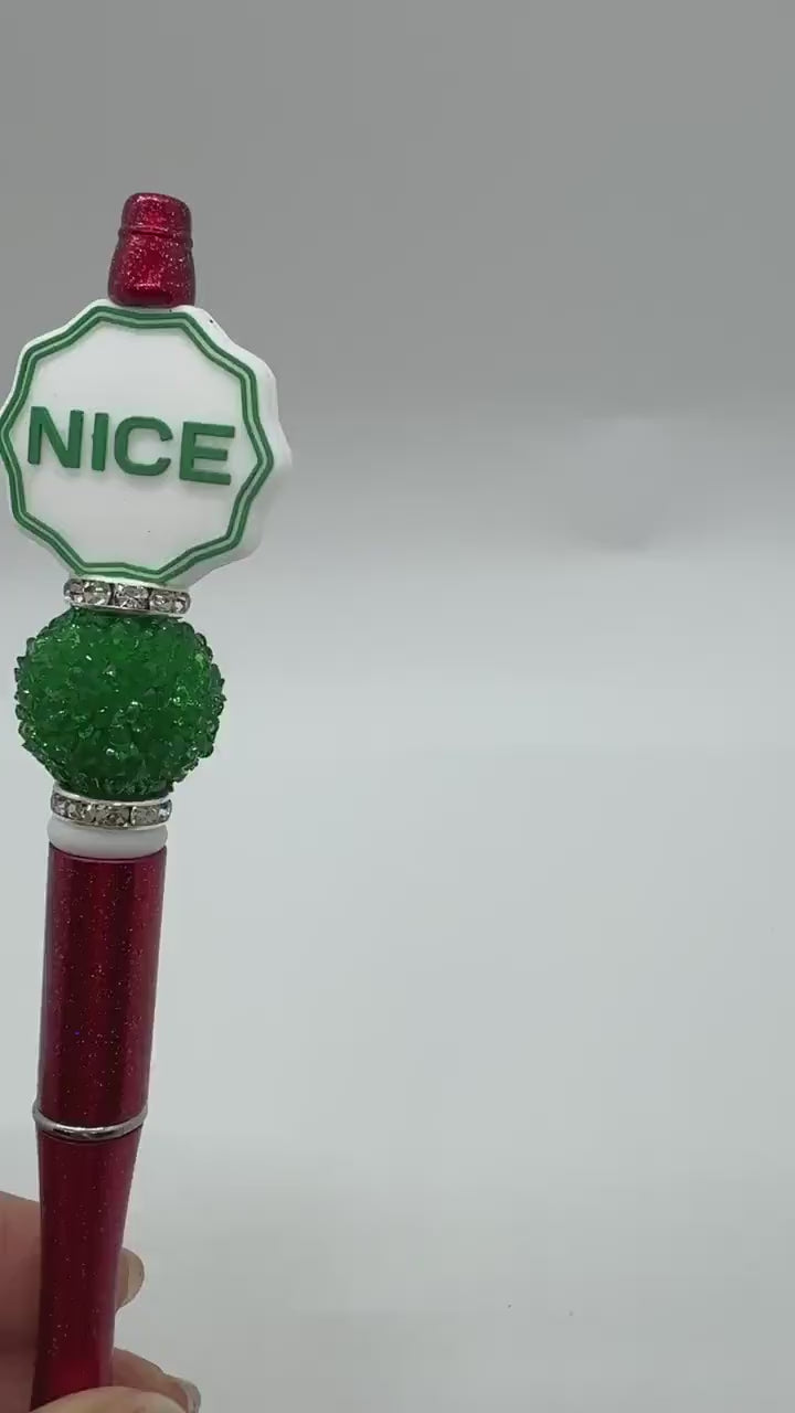 Custom Beaded Naughty or Nice Double Sided Pens, Santa's Naughty or Nice List Beaded Pen