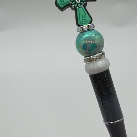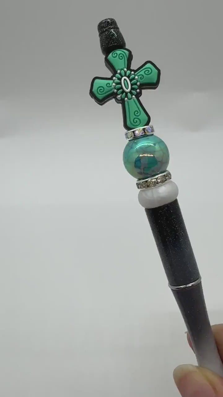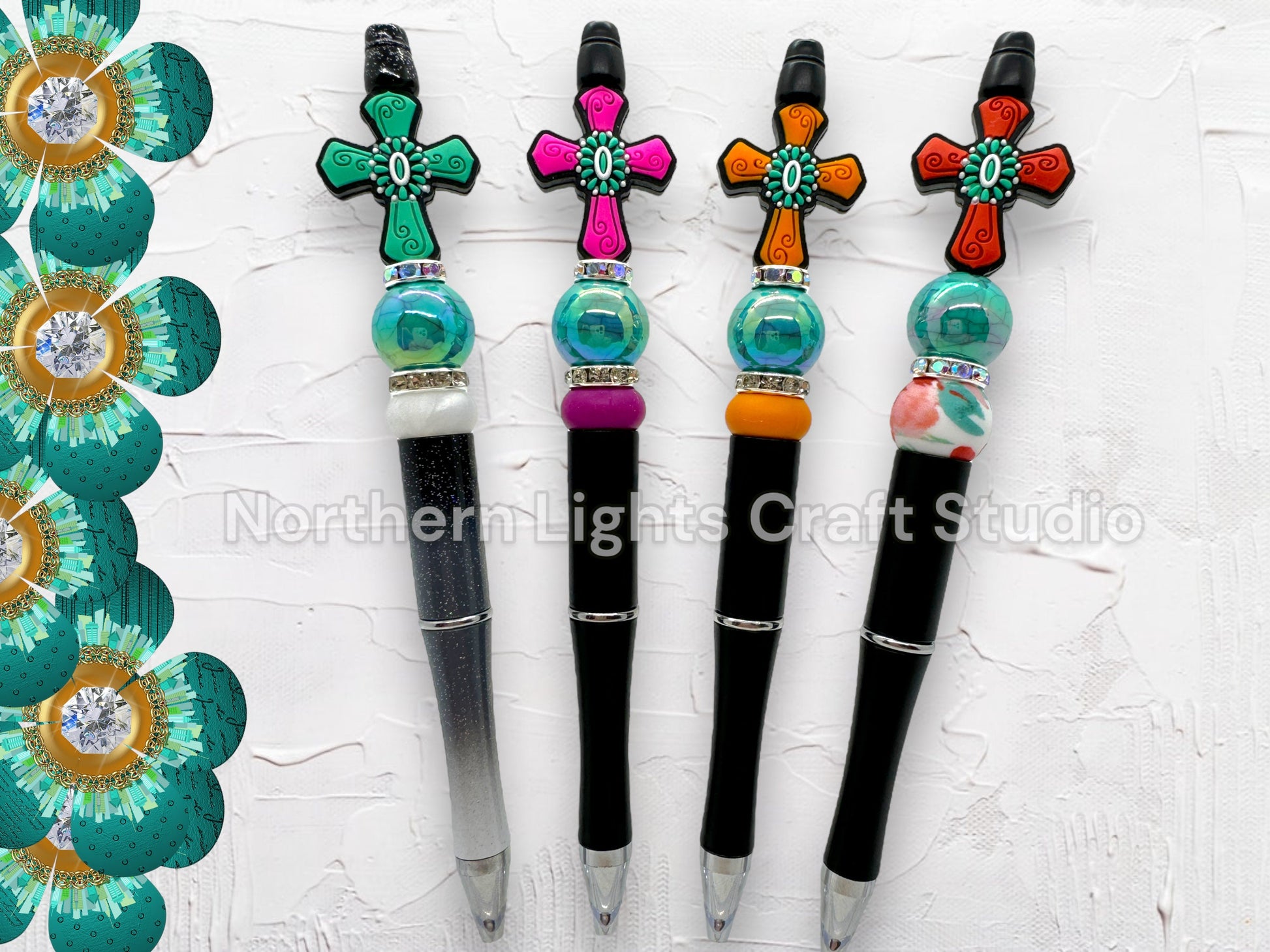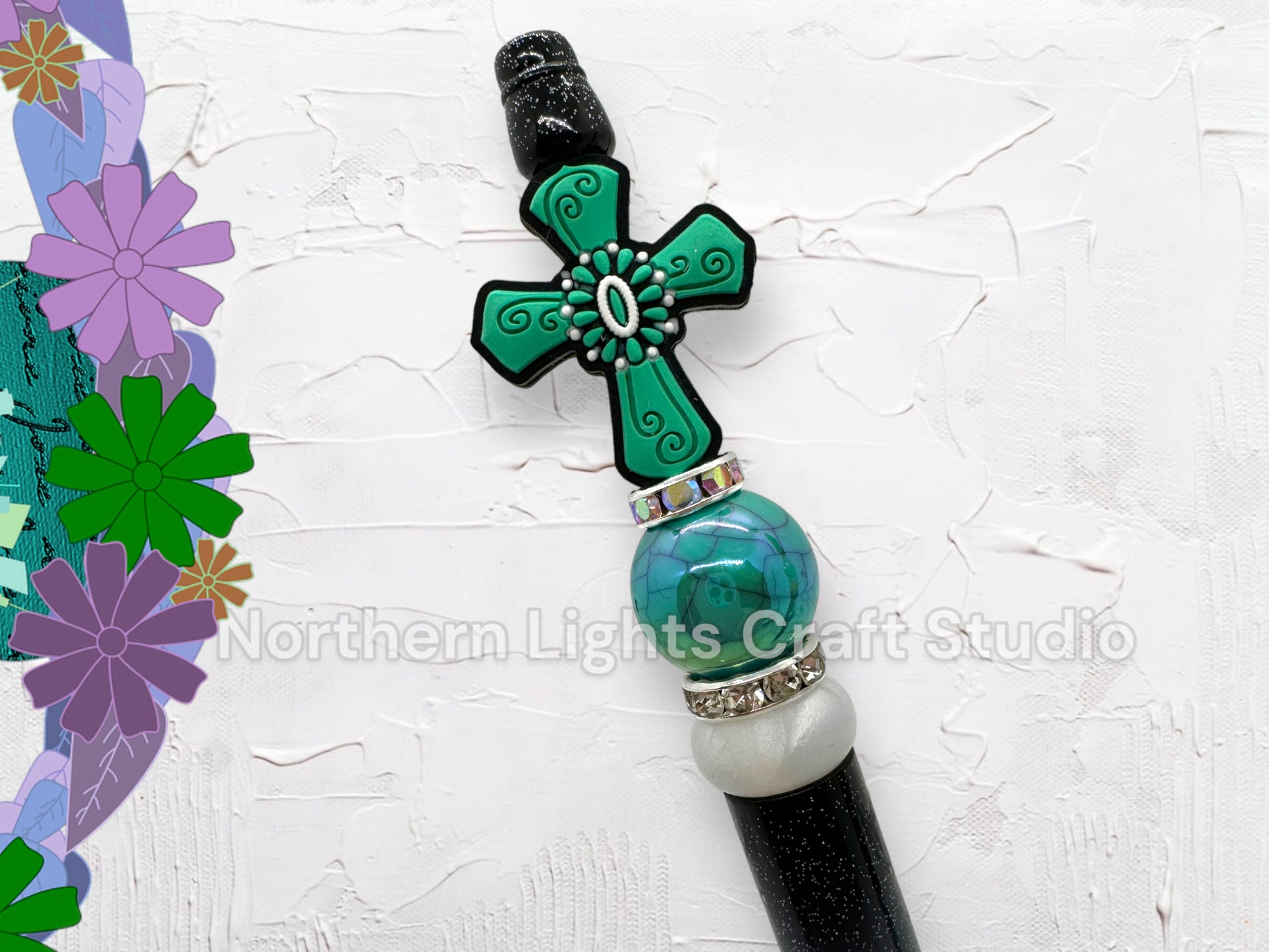 Custom Beaded Turquoise Accent Cross Pen, Silicone Cross Pen, Turquoise Faith Pen, Handmade Cross Gift, Stocking Stuffer Pen