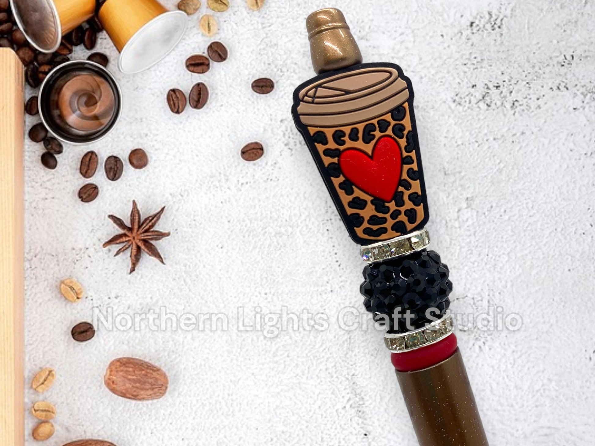 Custom Coffee Pen, Beaded Coffee Pen, Bling Pen, Bling Coffee Pen, Gift for Coffee Lovers, Gourmet Coffee Pen, Animal Print Coffee Cup Bead