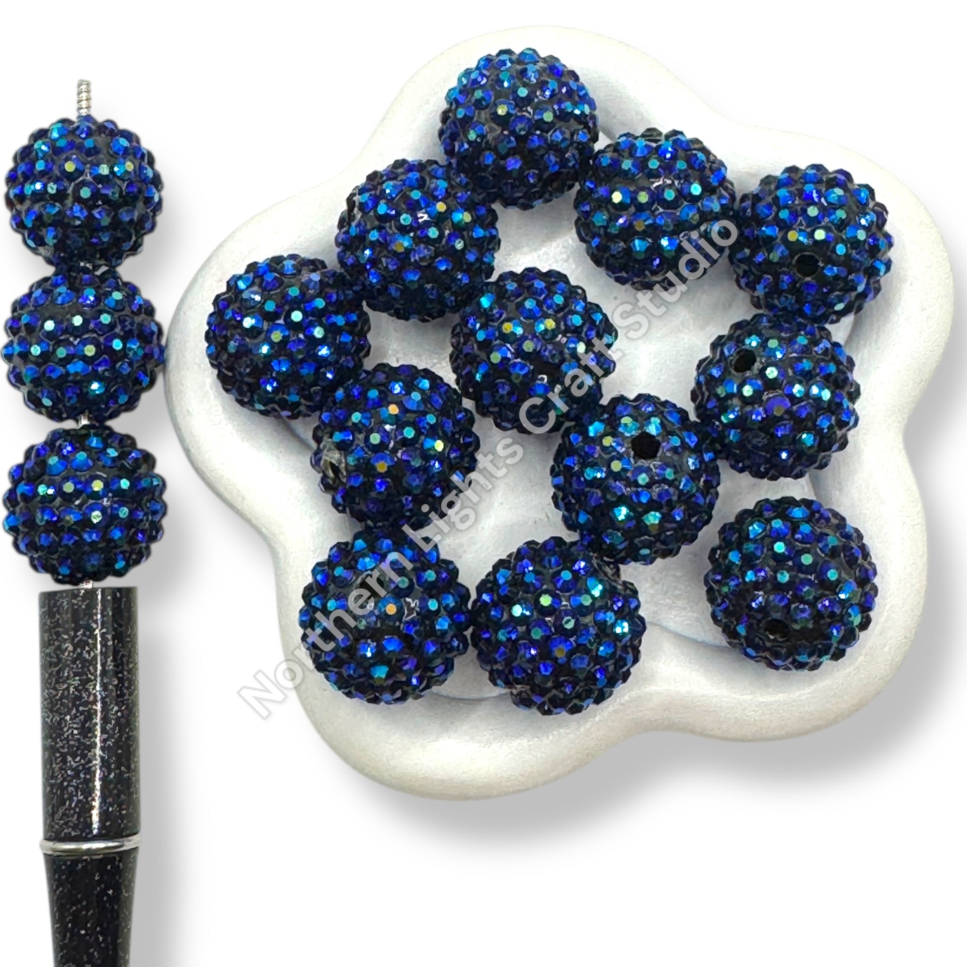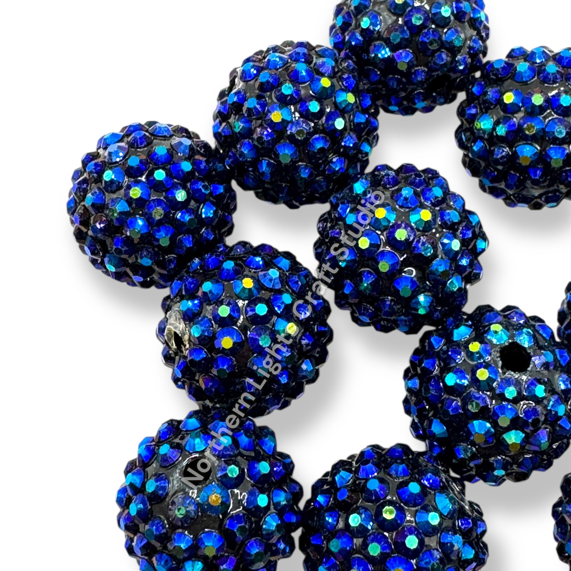 Price is for one 10 pack of dark blue ab 20mm acrylic rhinestone bubblegum beads.