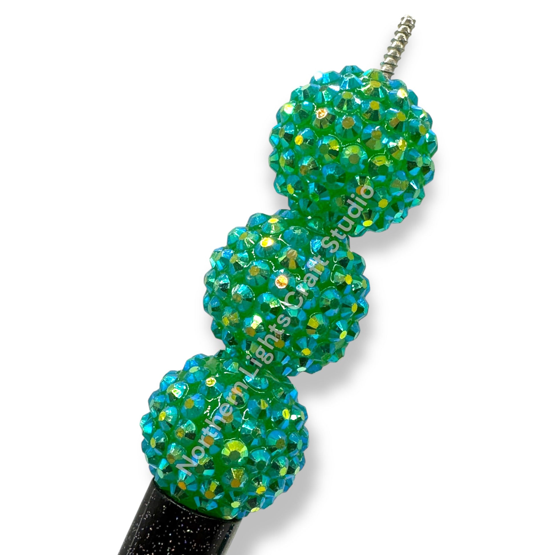 Price is for one 10 pack of medium green ab color 20mm acrylic rhinestone bubblegum beads.