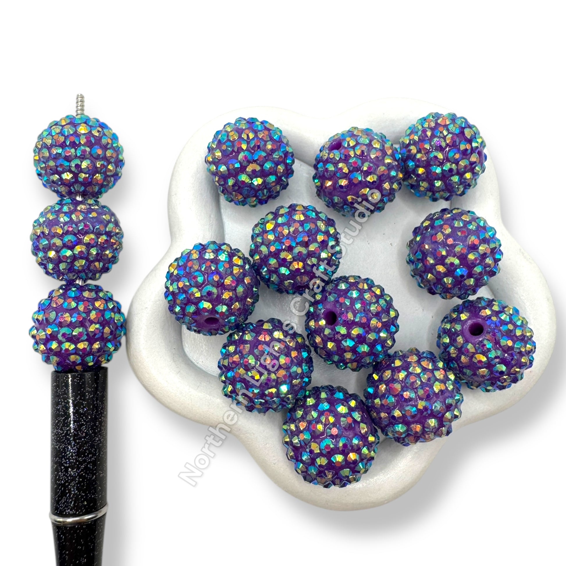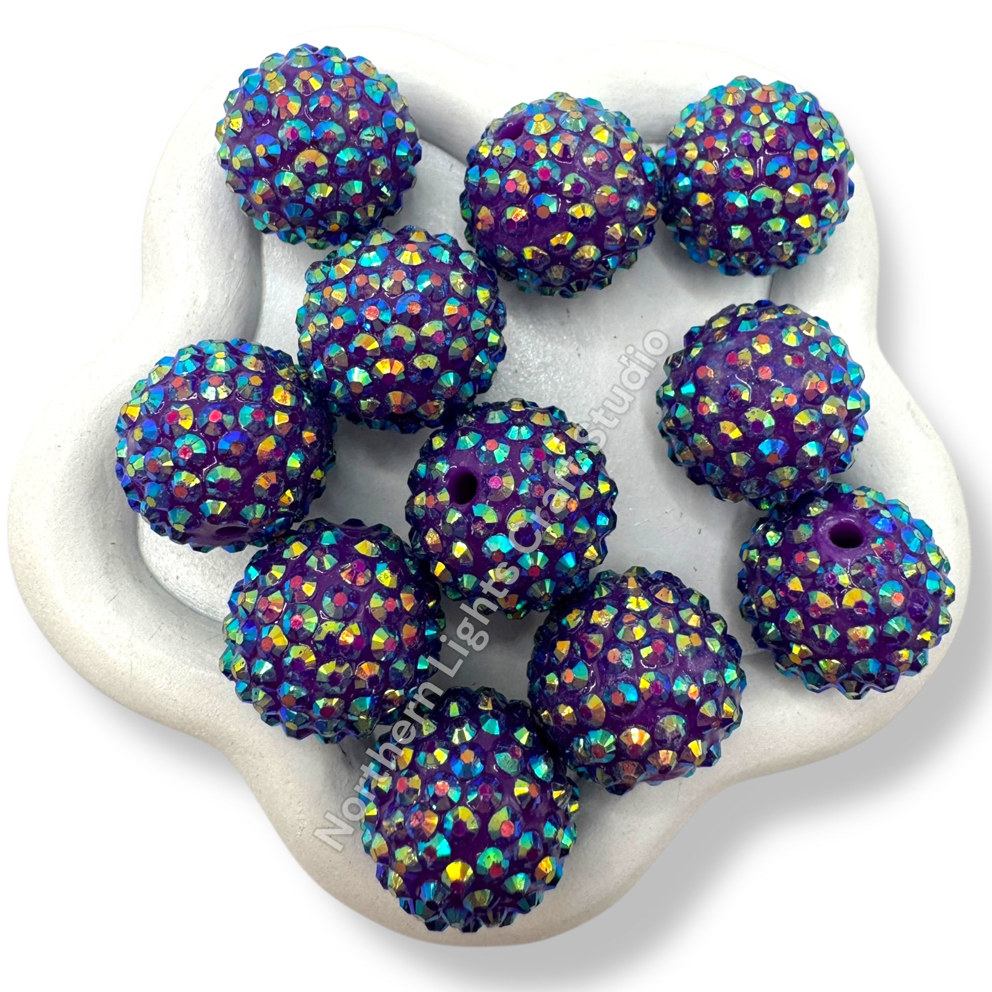Price is for one 10 pack of dark purple ab color 20mm acrylic rhinestone bubblegum beads.