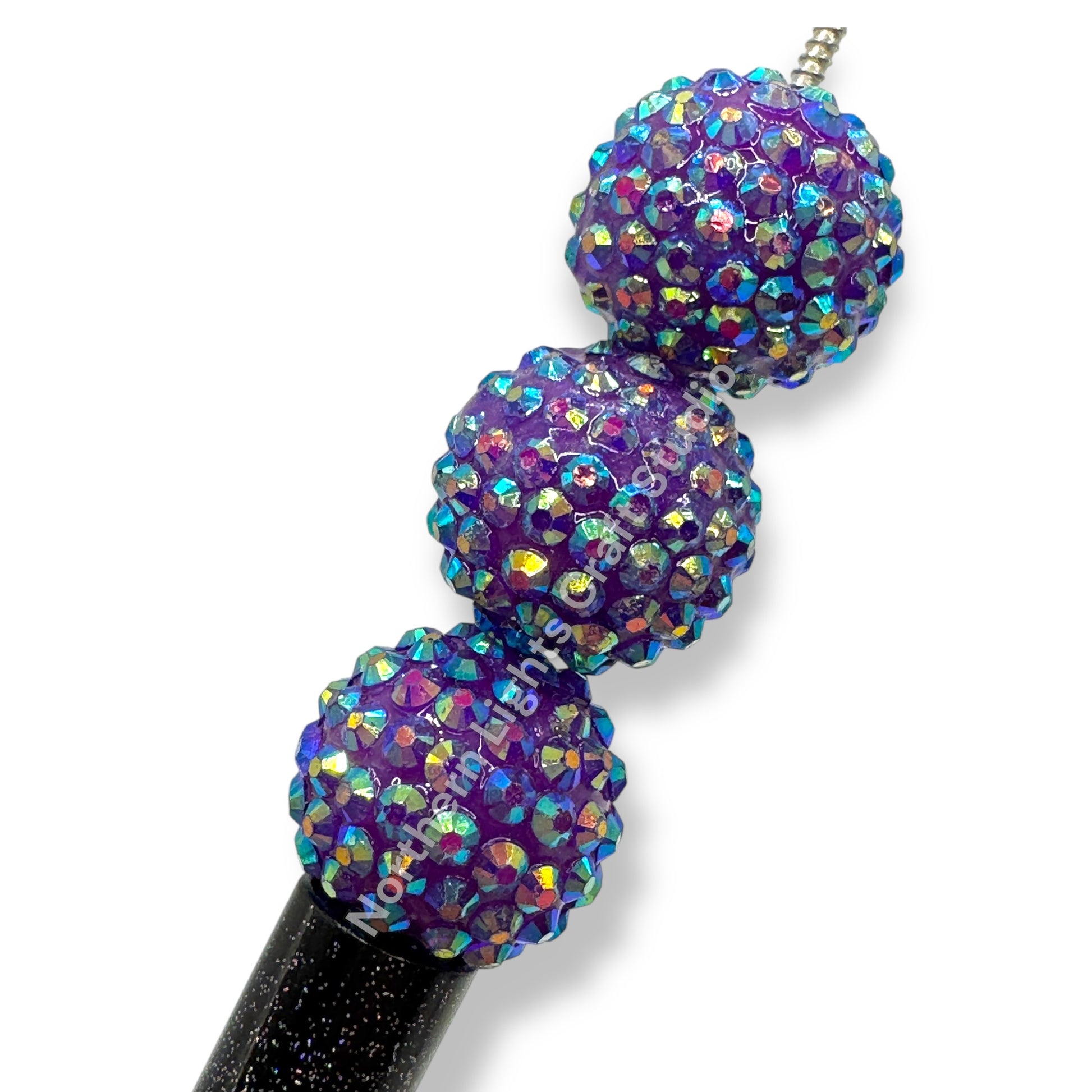 Dark Purple AB Acrylic 20mm Rhinestone Bubblegum Beads - 10pc.