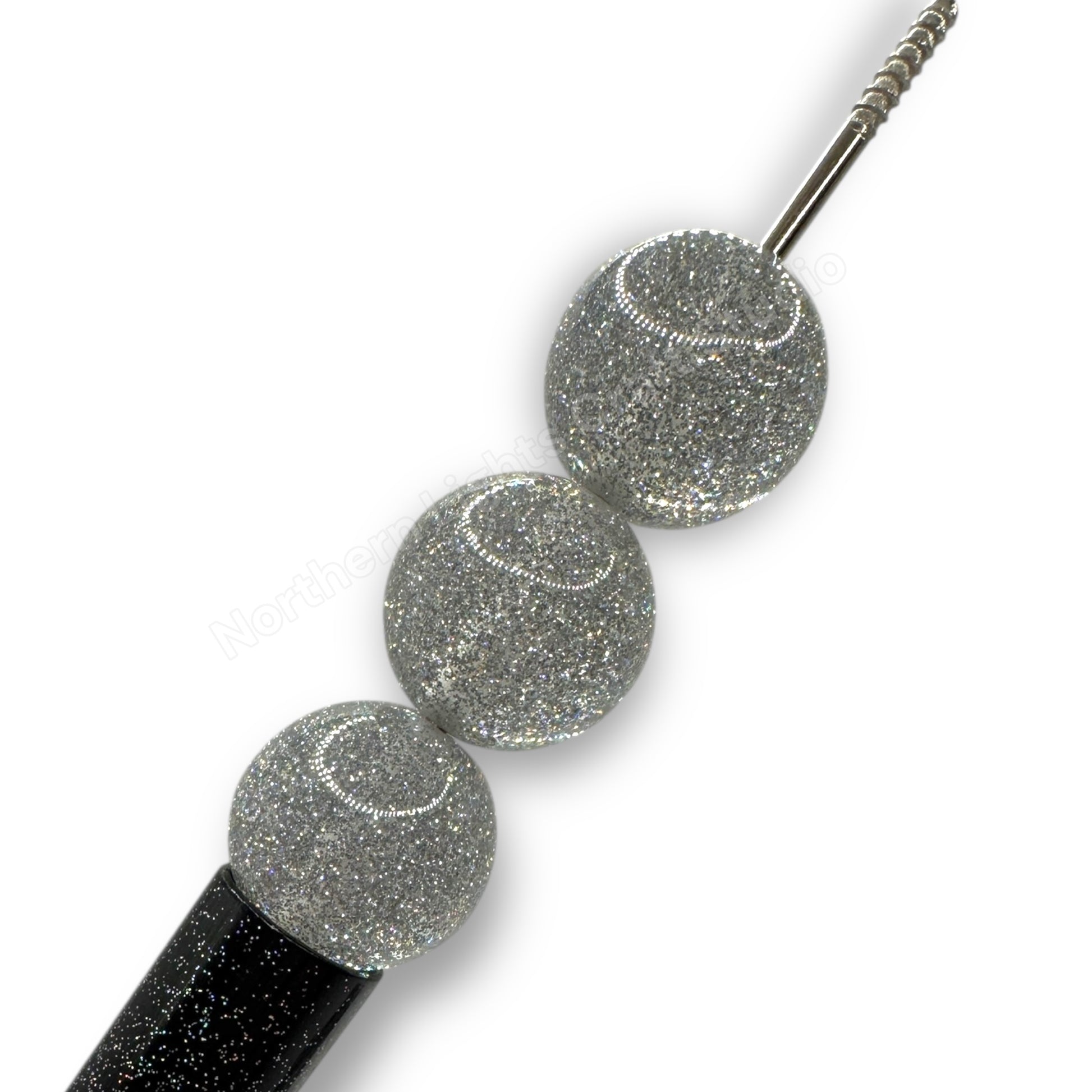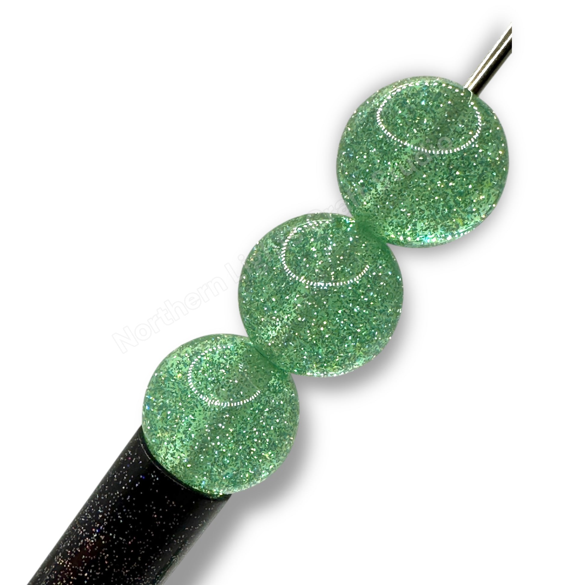 Price is for one pack of 20 16mm beads. Beads filled with fine glitter. Holes are big enough to fit pen. Note that we do our best to accurately capture and depict colors, but there may be slight discrepancies due to lighting and screen settings. Some colors may appear darker than the photograph.