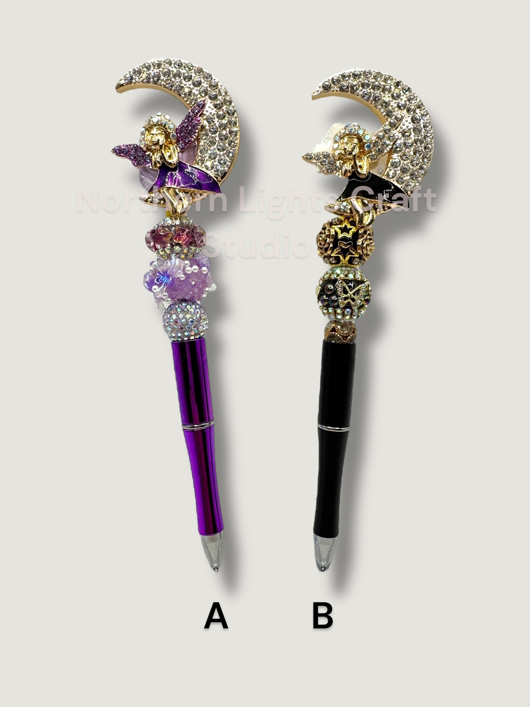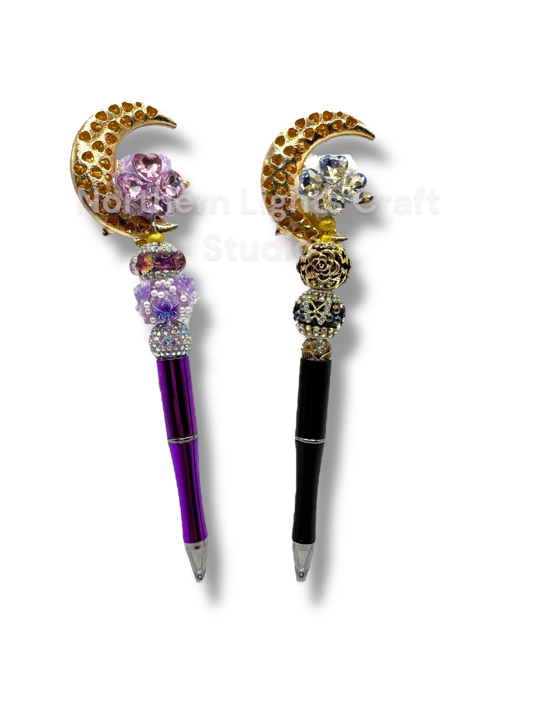 Price is for one pen. Ourr fancy pens are handcrafted writing tools that combines elegance and functionality. Each pen is approximately 7.5" long. The pens write 1.0 black ink and are medium ball point pens. They are refillable with refills that are specifically considered "beaded pen" ink refills. Each pen purchased comes with one free ink refill while supplies last.