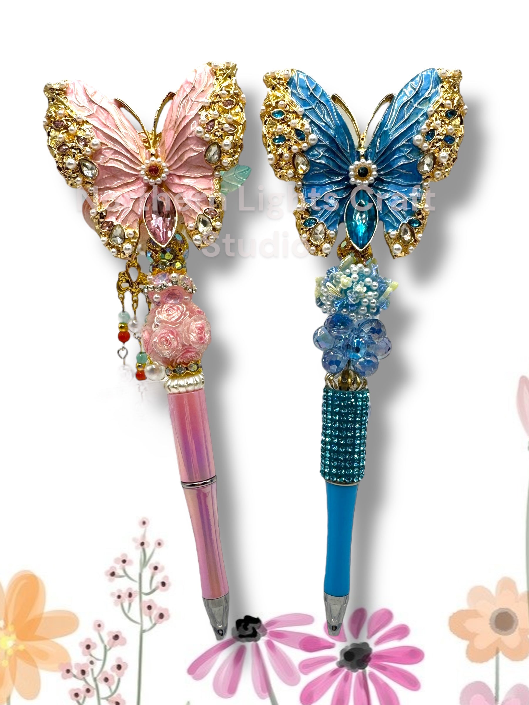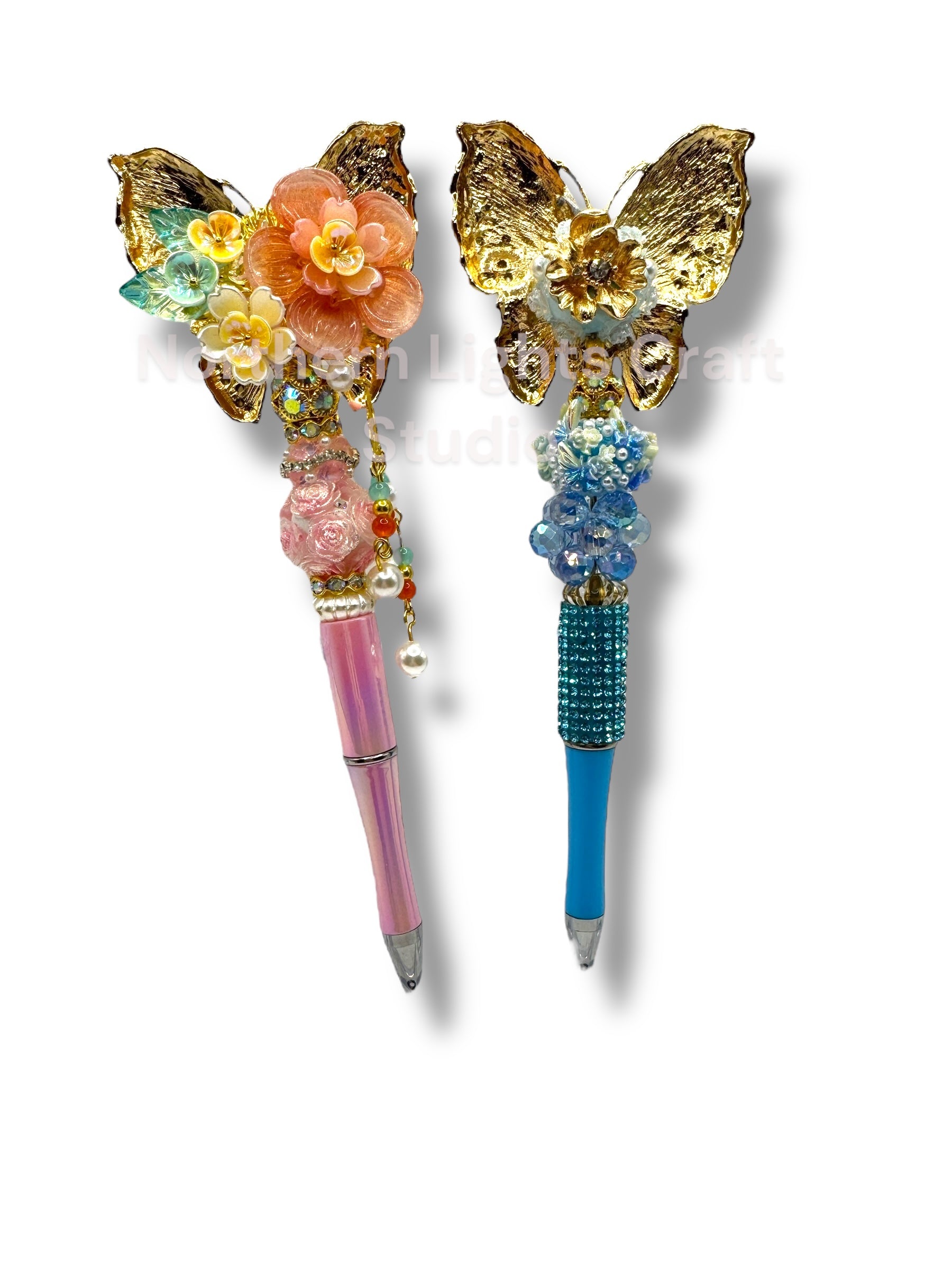 Price is for one pen. Our butterfly pens are handcrafted writing tools that combines elegance and functionality. Each pen is approximately 7" long. The pens write 1.0 black ink and are medium ball point pens. They are refillable with refills that are specifically considered "beaded pen" ink refills. Each pen purchased comes with one free ink refill while supplies last.