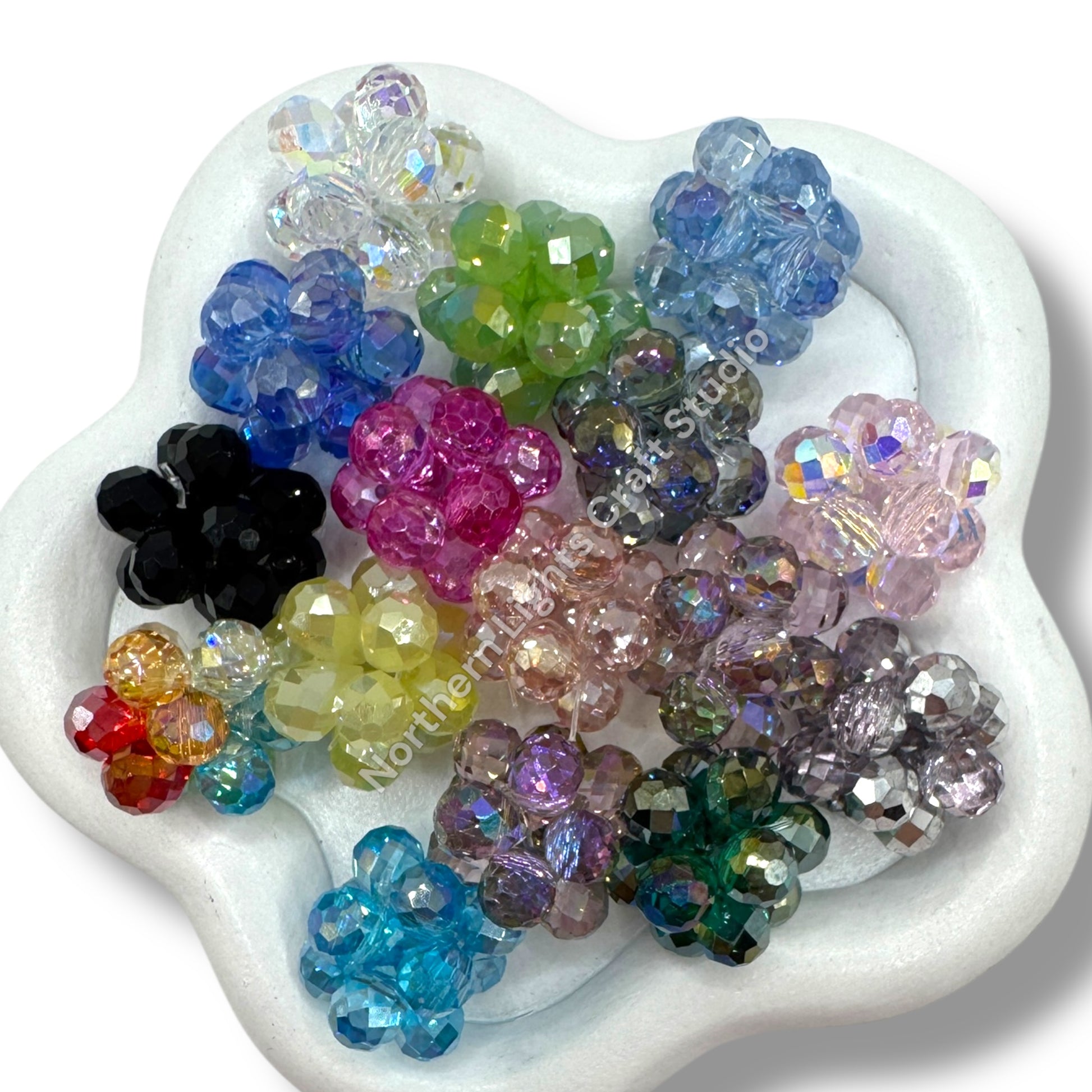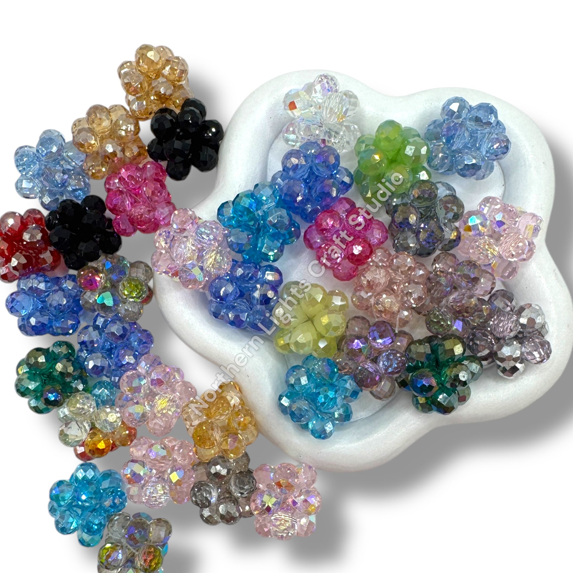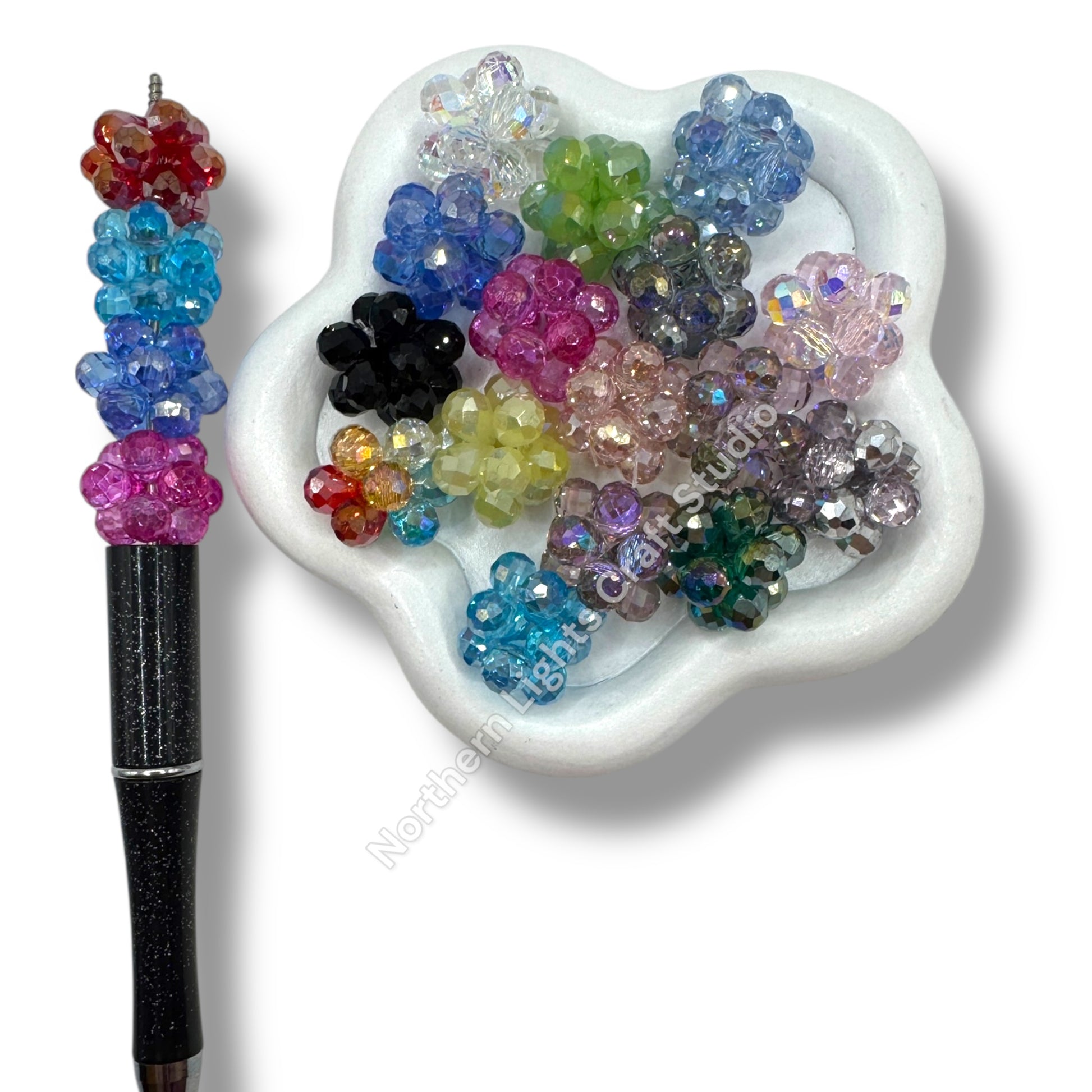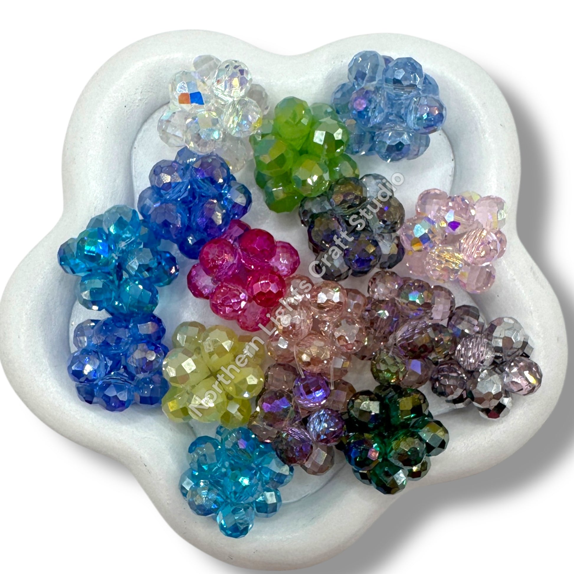 Price is for a mix bag of 7pcs. -colors chosen at random. These hand knotted 16mm beads are the ultimate bling bead and are made of glass crystal teardrops knotted to form a beautiful 16mm bead. The holes are big enough to use on pens and keychains.