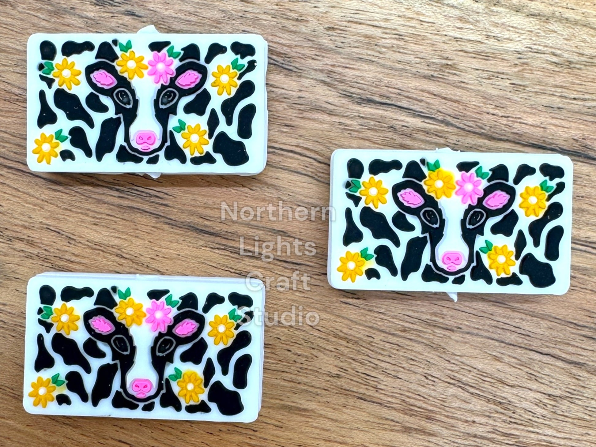 Flower Cow Silicone Focal Bead, Animal Focal Beads, Cow Focal, Cow Print Focal