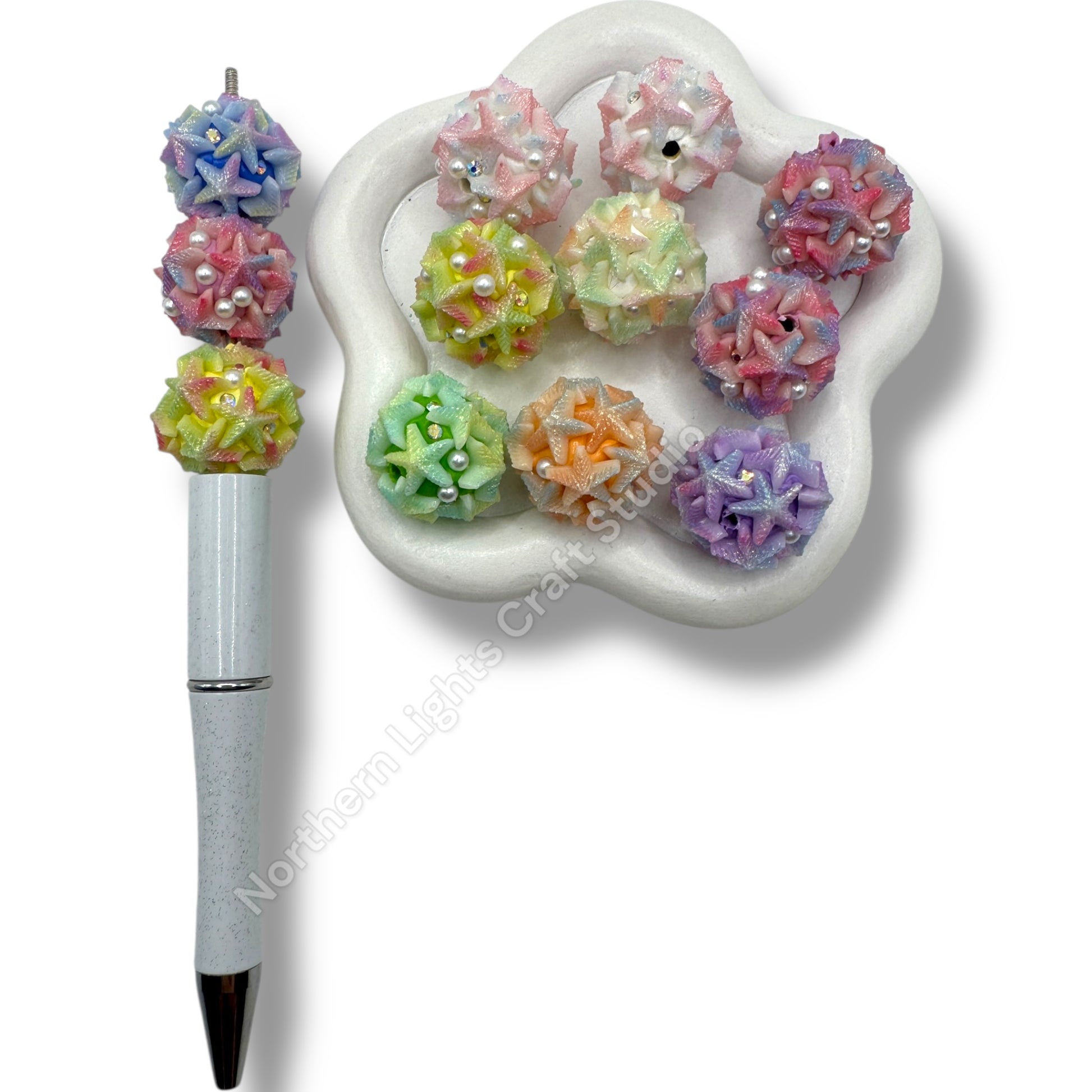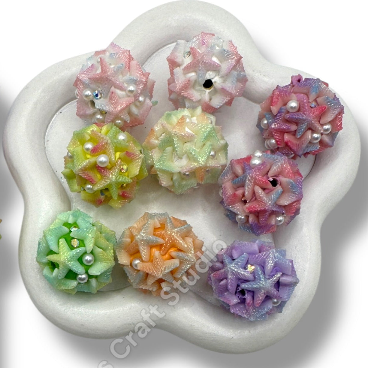 Price is for one pack of 5 beads, colors selected randomly. These beads are approximately 20mm and have starfish charms, pearls, and rhinestone embellishments.