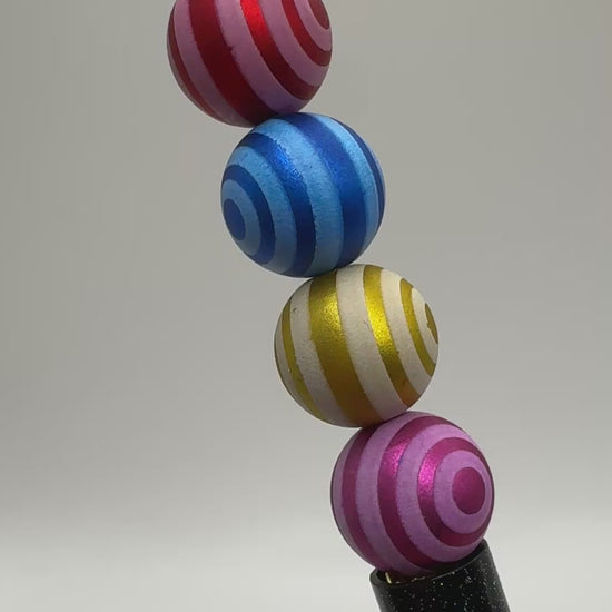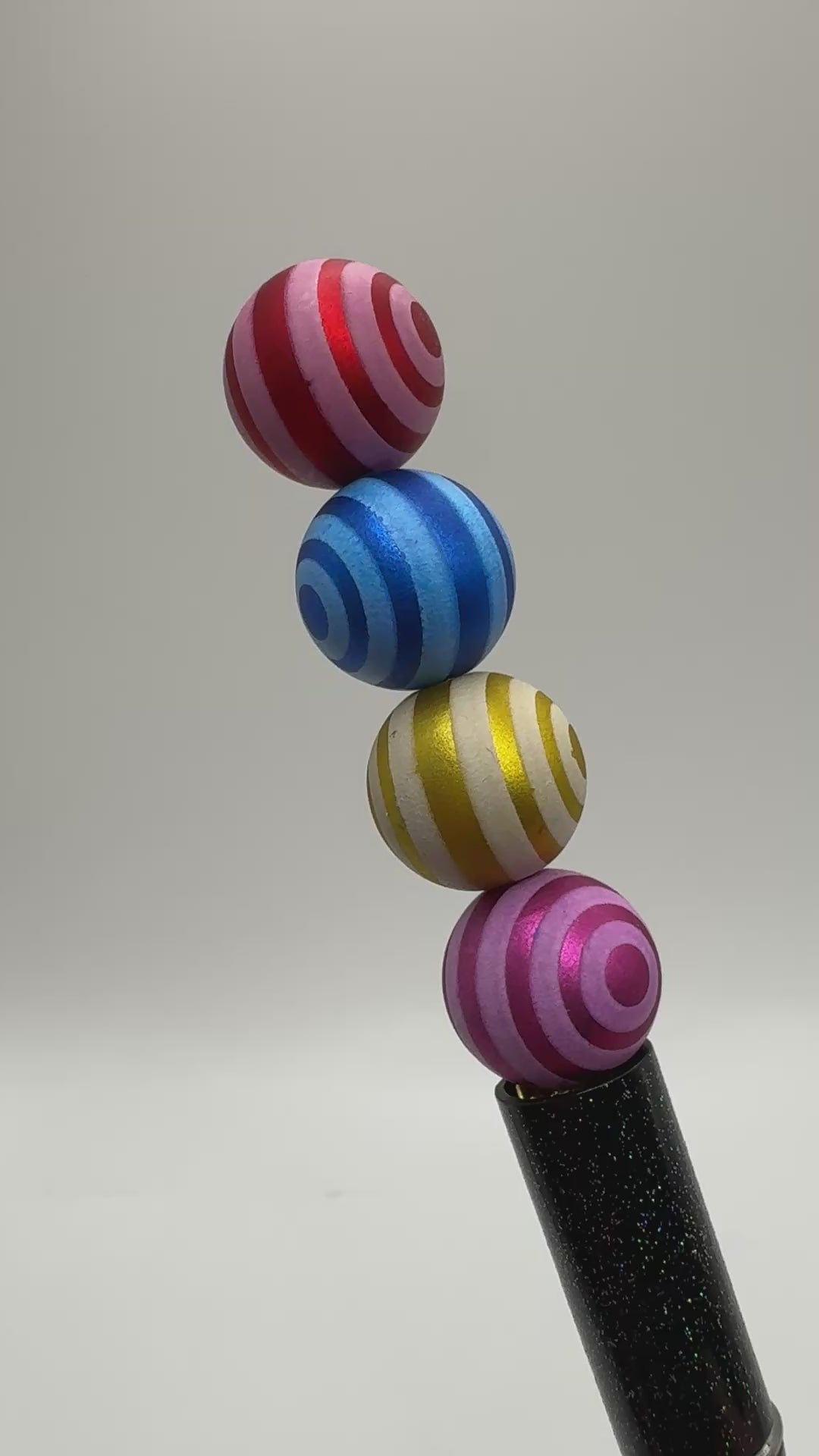 Price is for one pack of 20 16mm beads. Beads are 16mm and are made of acrylic. Holes are big enough to fit beaded pens. These beads feature a frosted white swirl.