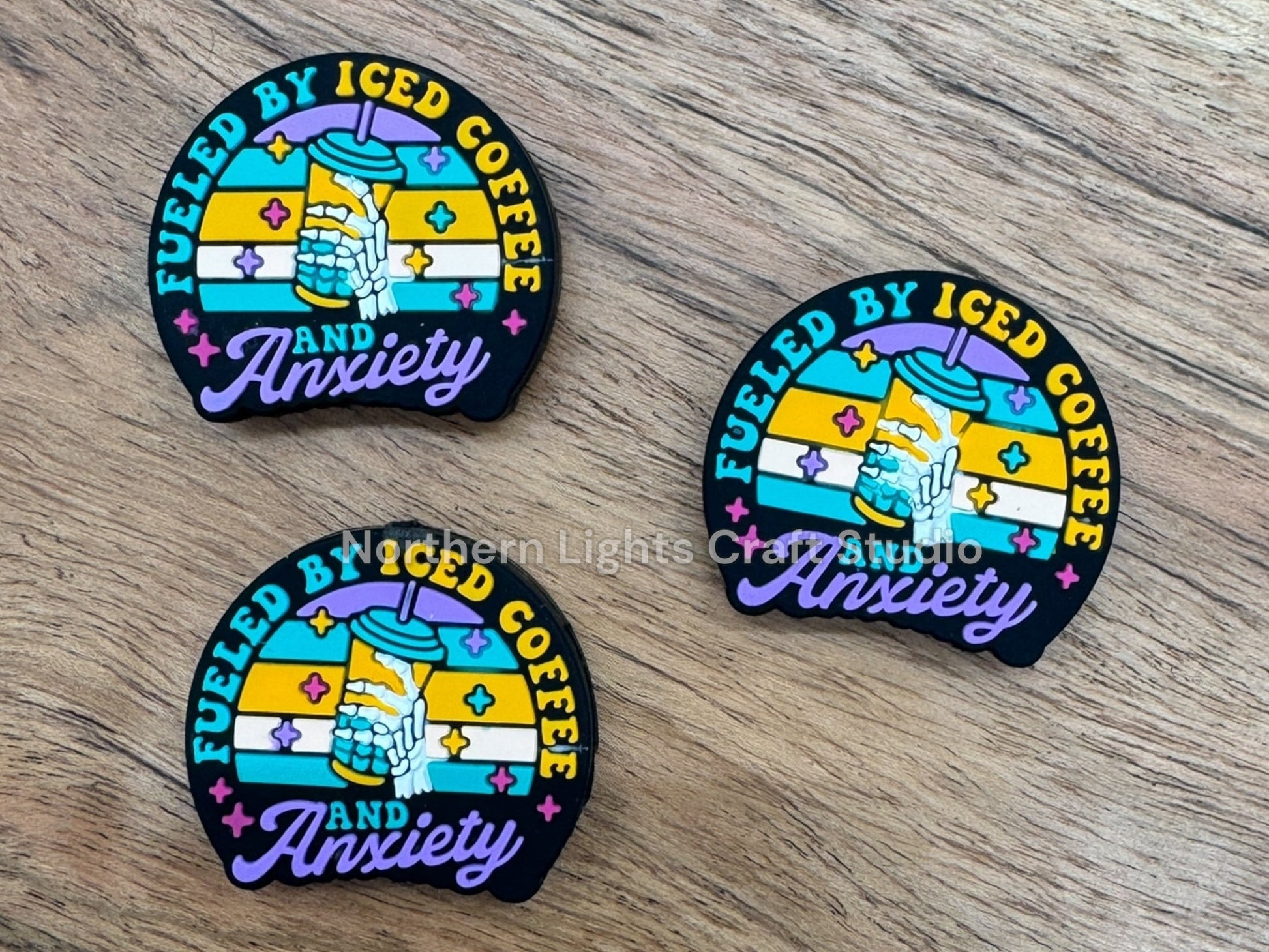 Fueled By Ice Coffee and Anxiety Silicone Focal Bead, Sarcastic Bead, Anxiety Focal
